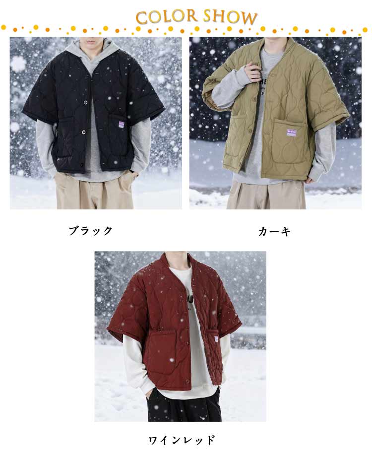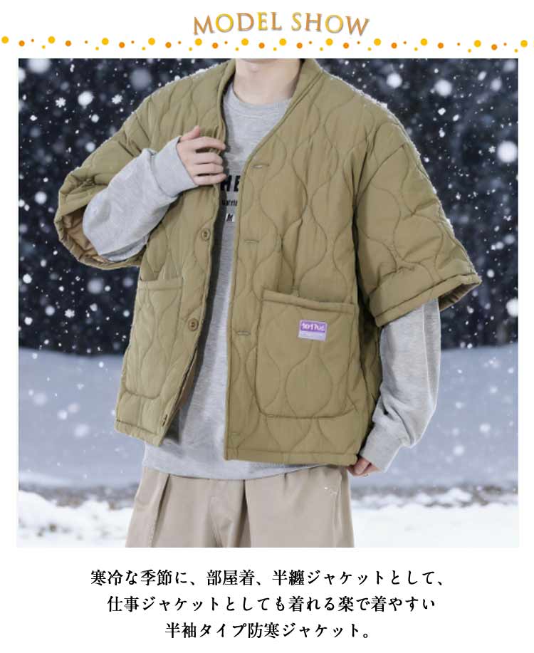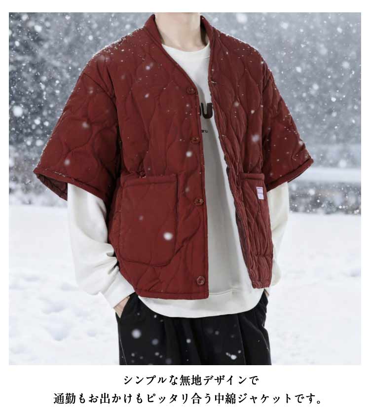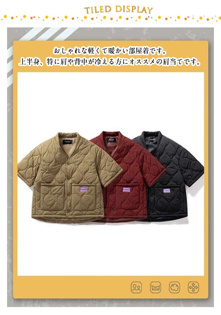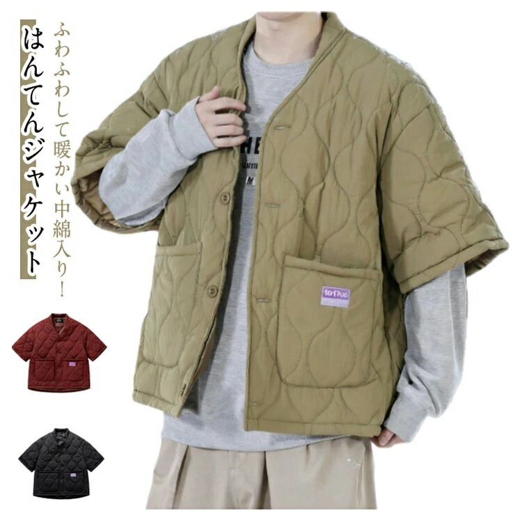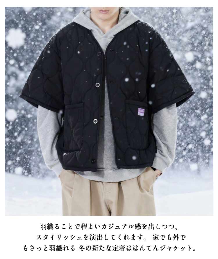 はんてんジャケット 冬の羽織り ゆったりサイズ 重ね着 軽い 中綿入り 小さくたためる ポケット付き