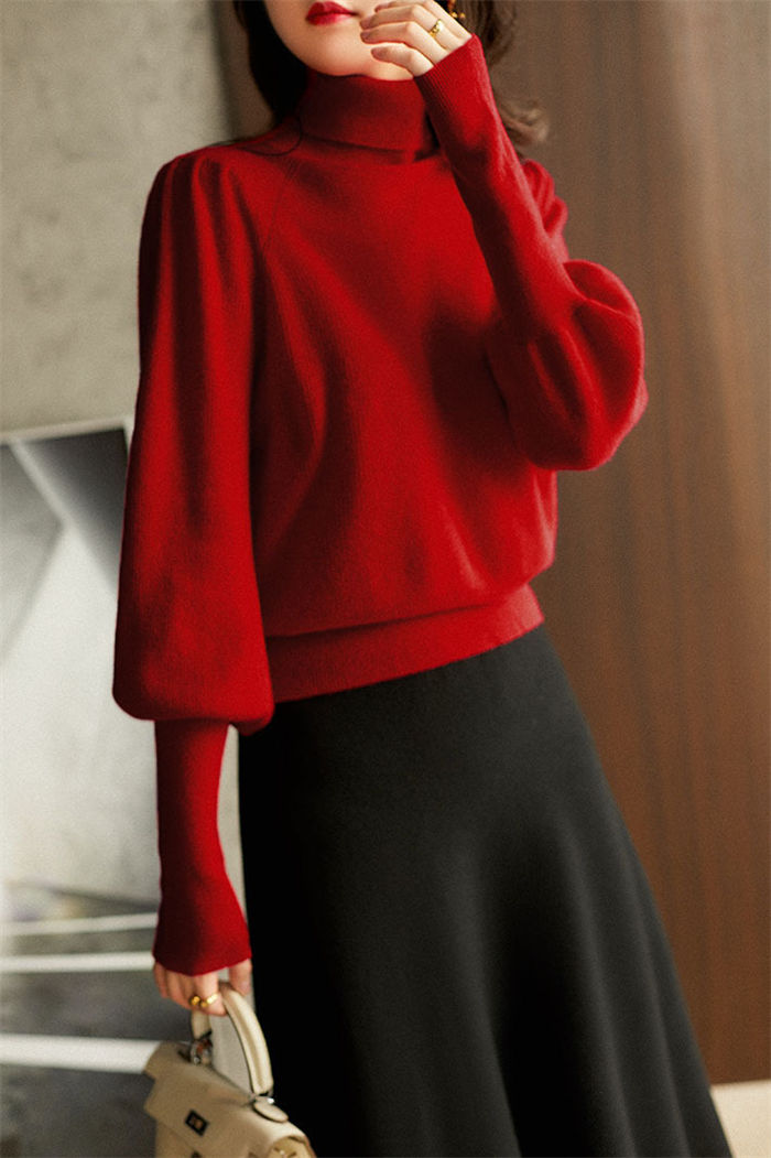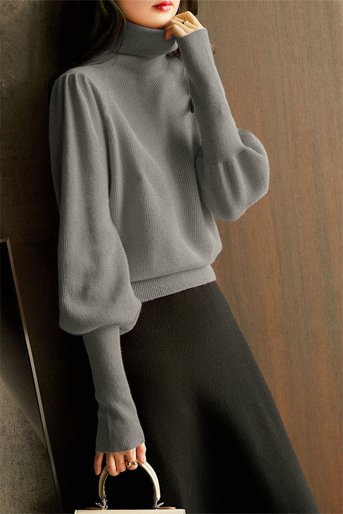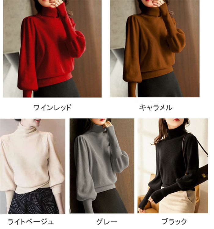 トップス セーター リブニット ニットセーター ハイネック 長袖 無地 冬 秋冬 ボトルネック パフスリーブ パフ袖 カットソー 春 秋 新作 プルオーバー 大人 体型カバー ゆったり OL お洒落