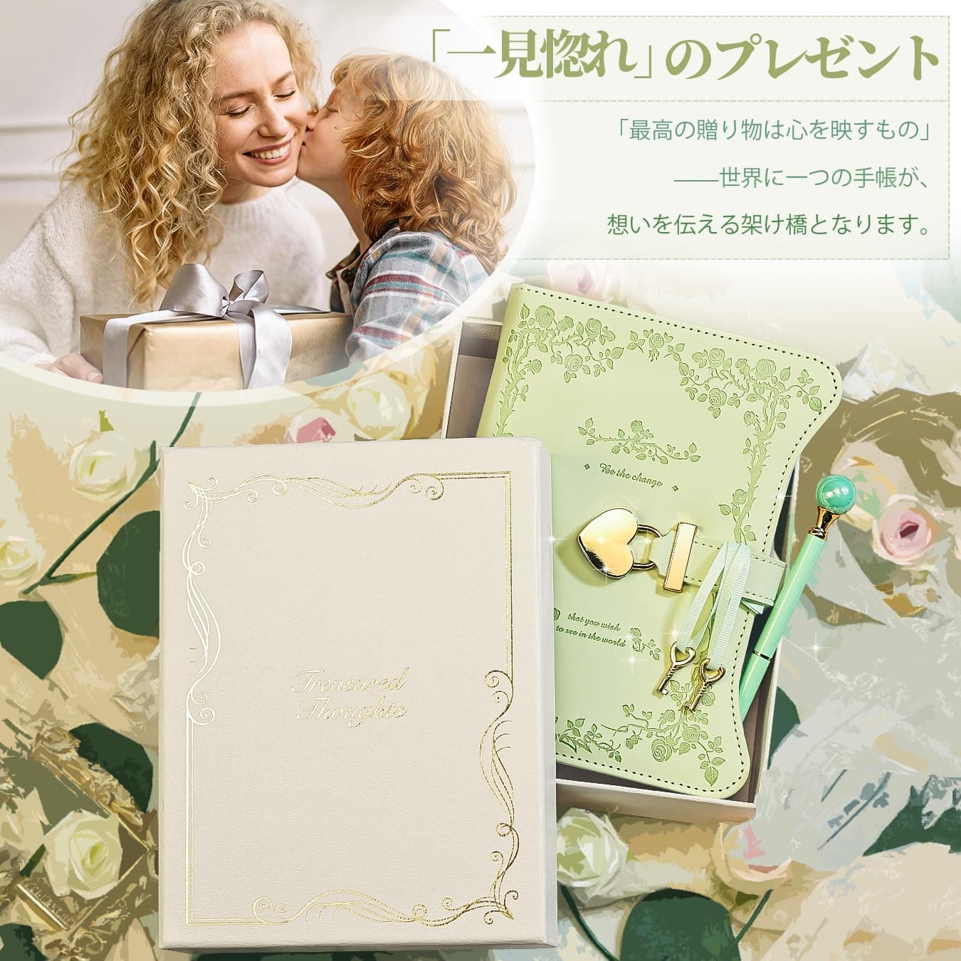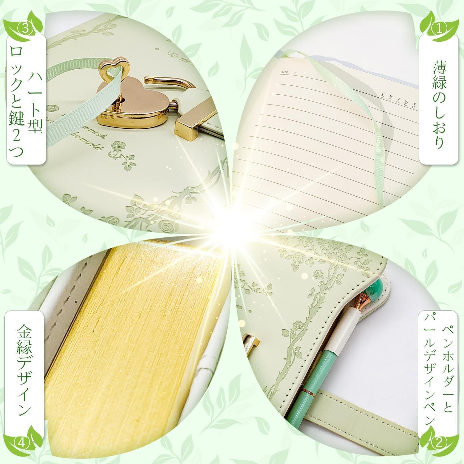 【秘密をしっかり守る鍵付き日記帳】ハートデザインのロックは大切な秘密とプライバシーを守るものとしてご愛用いただけます。鍵付きノートは自身の秘密スペースで、ここにすべての貴重な思い出、プライバシー、アイデア、誰でも言えない秘密と心の考えなどを記録して保存しましょう!B6サイズ手帳ノートは多くのカバンとバッグに入れますので、持ち運びにも便利ですよ!【プレゼントに最適な文房具セット】この鍵付きノートは自分用にも友人や同級生にもちょうど良いギフト:交換ノート、秘密ノート、勉強計画ノート、パスワード管理ノートなどの使い方が個人により様々あります。お正月♪・誕生日♪・成人式♪・記念日♪・入学式♪・卒業式♪の贈り物として、友人、家族、恋人、子供なの人々に適しています。年齢を問わず、小学生、中学生、高校生、大学生、サラリーマン、社会人、主婦などにおすすめします♪♪♪【オシャレなローズガーデン模様の防水PUカバー】柔らかい抹茶ミルク色、高級感のある手触りの良い質感のPUレザークロスは耐久性♪と防水力♪が物凄くいい!または、汚れが付いても簡単で清潔にします(≧∇≦)!ノートで学習と仕事計画や大切なことを毎日記録して、学習と仕事効率を向上させ、大事な目標が達成させ、時間管理術を身につけます。新学期準備、入学祝い、入職お祝いプレゼント、誕生日プレゼントとしてもいいですよ!【高自由度でたくさん書き込めるノート】この日記帳のページ数は360ページとなっているので、毎日使えば、一年間ぐらい書けます。日記をつけるのが趣味の方にとてもおすすめです!厚手でインクがにじみにくい紙を採用するので、ボールペンや万年筆のインクが滲む問題なしだけでわなく、鉛筆とシャープペンシルを使用する方に迷惑をかけの消しゴム繰り返し摩擦と、紙が破れる問題も無いです。着脱可なデザインはカバーは繰り返し使用は可能です!学校、オフィスでの使用が大活躍です!長く使える素敵物です♪♪♪【アメリカアマゾンでも大人気日記帳】アメリカで計186件の評価、5つ星のうちなんと4.7の高評価がもらいました、お客様から「外見がかわいい」「一目惚れ!かわいい」「リピ買いしたい」「姪の大好きな誕生日プレゼントです!」「とてもおすすめ!」などのご愛用のコメントがたくさんいただきました。※サイズ:約200×150×40mm 用紙サイズ:B6横罫線 カラー:ピンク ページ数:360ページ 材質:PUレザー※測り方により誤差が発生することがごさいます、予めご了承ください。