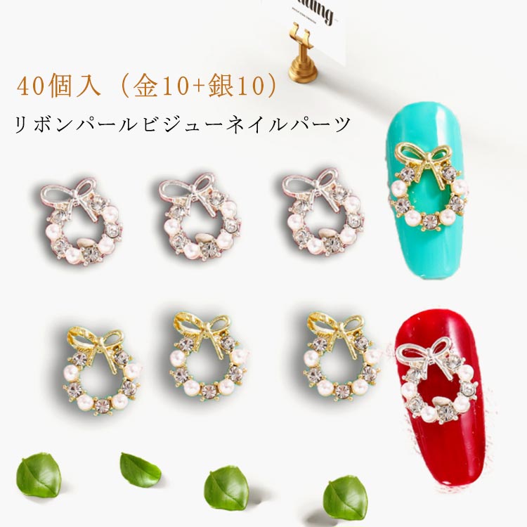 リボンリースネイルパーツ ジルコニア