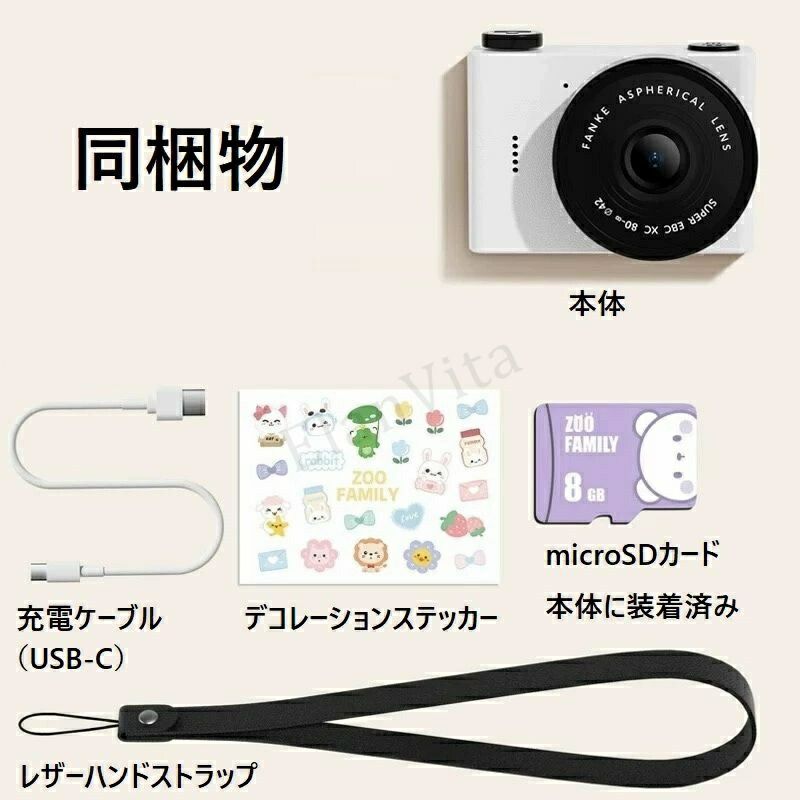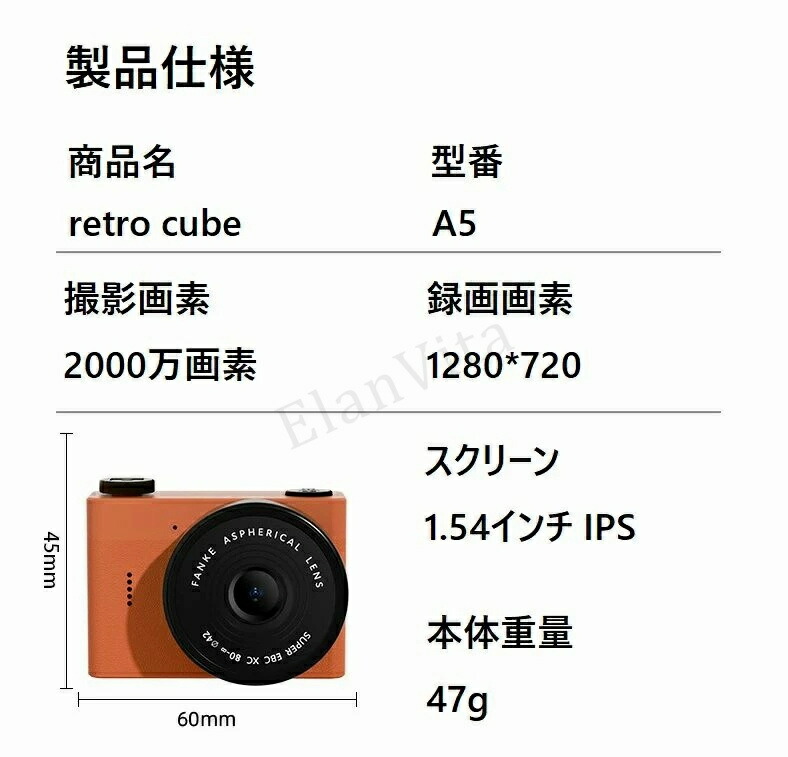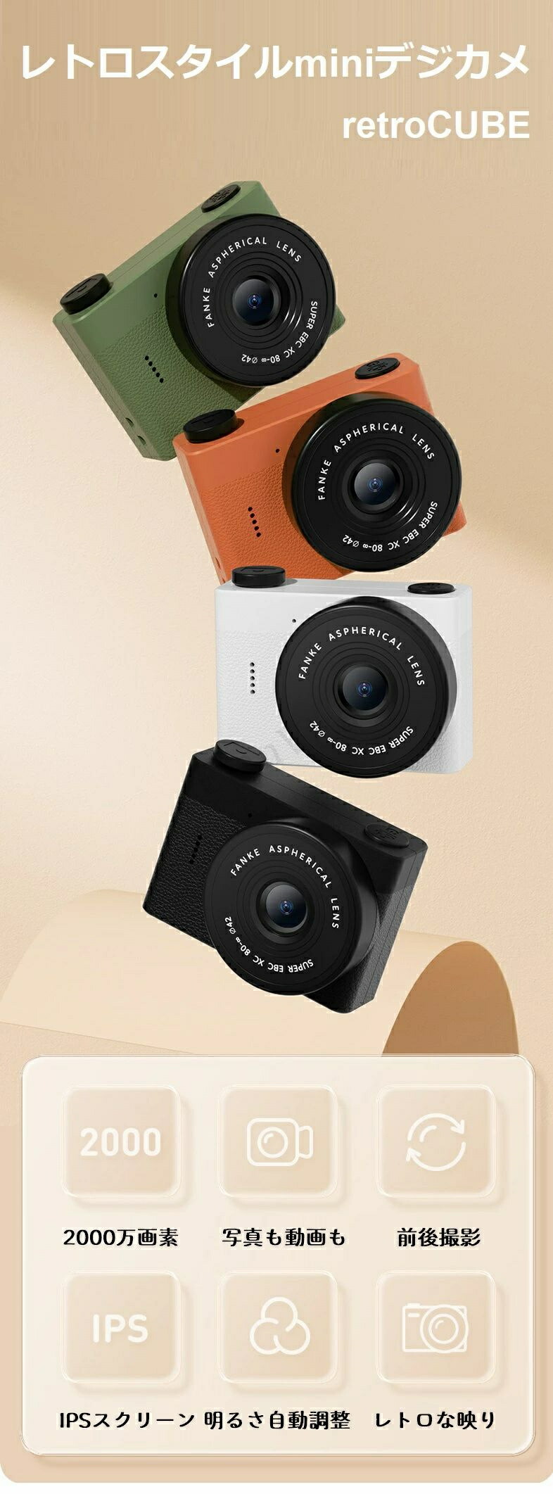 レトロスタイル ミニカメラ デジタルカ ホワイト ブラック オレンジ グリーン