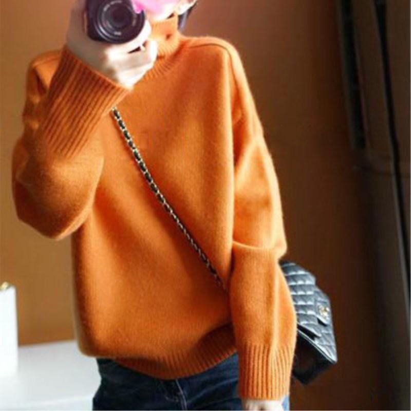 新作オレンジハイネックカシミヤセーター ブラック オレンジ ネービー・ブルー キャメル ベージュ フルーツグリーン S M L XL 2XL
