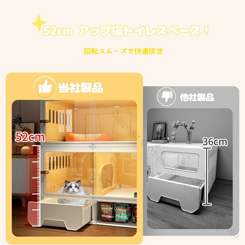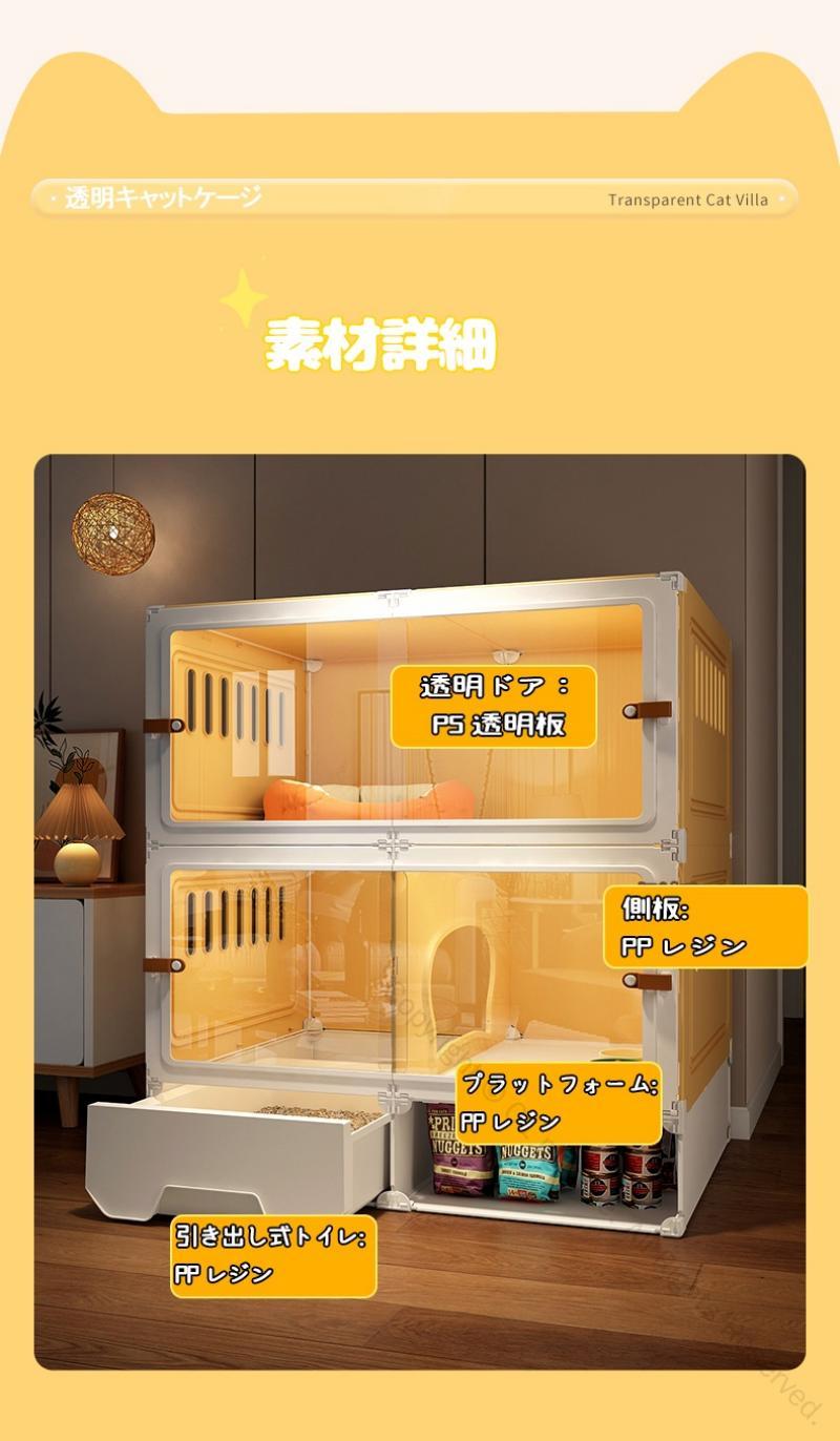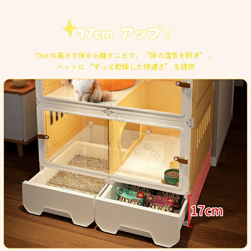 猫 ケージ キャットケージ トイレ付き 大型 2段 3段 猫ハウス 前面透明 引き出し付き 猫砂スコップ付き 掃除しやすい 脱走防止 快適スペース おしゃれな猫ペットケージ 多頭飼い