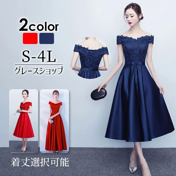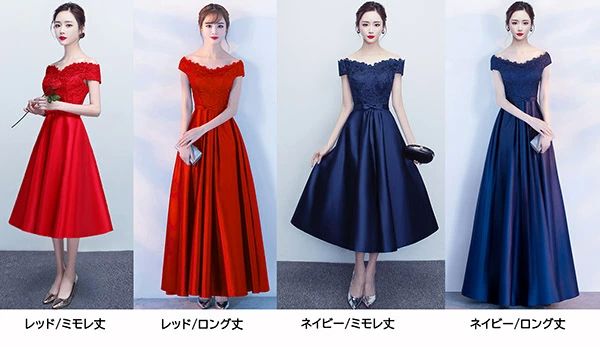 赤 ワンピース ミモレ丈 オフショルダ レディースファッション 続々登場 レッド/ミモレ丈 レッド/ロング丈+1380円 ネイビー/ミモレ丈 ネイビー/ロング丈+1380円 S M L LL(XL) 3L(2XL) 4L(3XL)