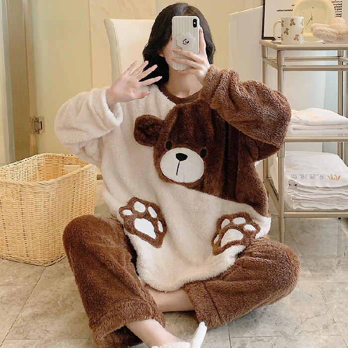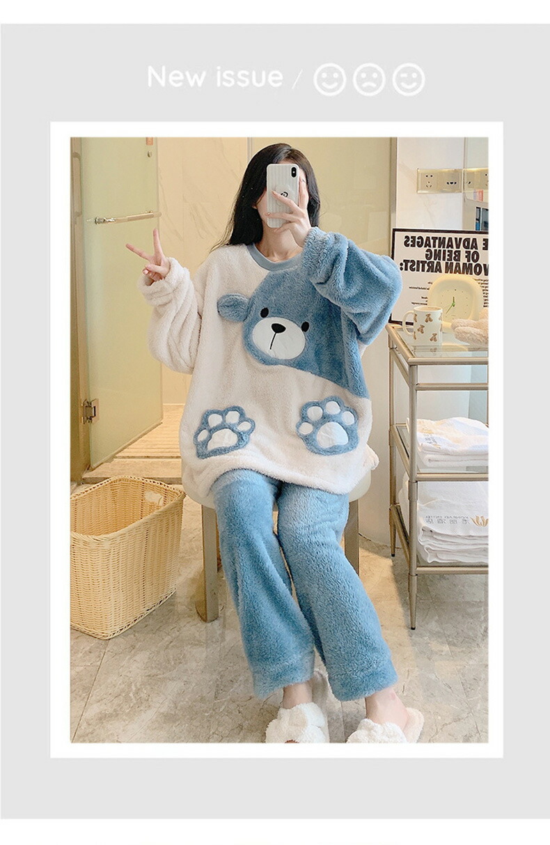 子供 入院 ペアパジャマ 上下 女性 ふわふわ ゆったり 厚手 綿 セット 防寒 ルームウエア スウェット 長ズボン コットン モコモコ 寝間着 男性