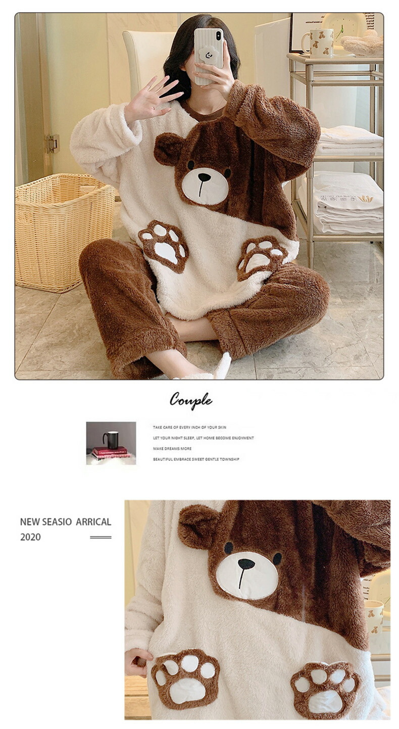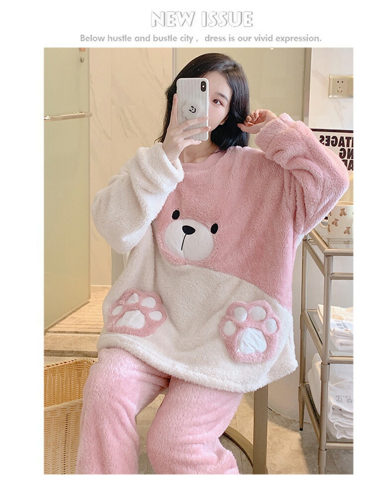 パジャマ 冬 長袖 ルームウェア レディース 部屋着 秋 前開き 上下セット 暖かい メンズ プレゼント あったか 秋冬 ギフト かわいい もこもこ