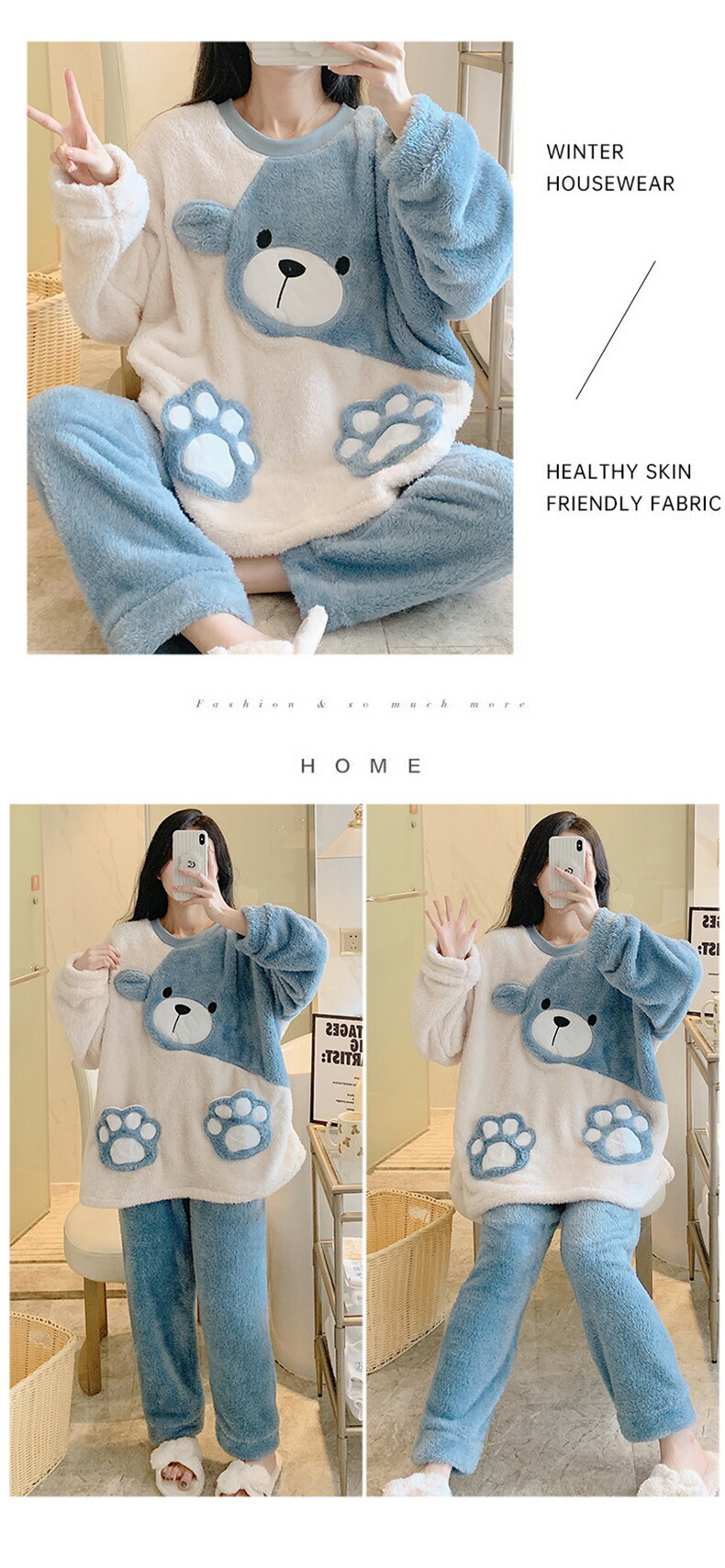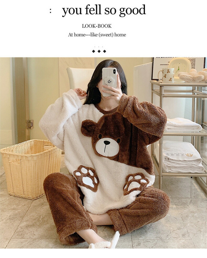 シンプルなデザインから可愛らしい柄まで、さまざまなスタイルで選べる冬用パジャマです。
