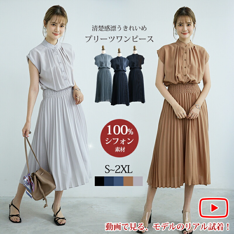 2025 新作 半袖 ワンピースプリー ワンピース 新登場! Sサイズ Mサイズ Lサイズ XLサイズ 2XLサイズ ライトグレー ブルーグレー モカ ネイビー ブラック
