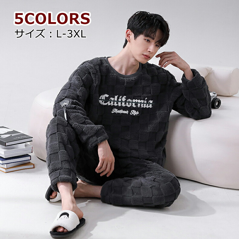 もこもこ 紳士 ナイトウェア 無地 大きいサイズ 秋冬 寝巻き セットアップ 綿100 LL ペア 父の日 春 カップル 綿100% 裏起毛 長ズボン