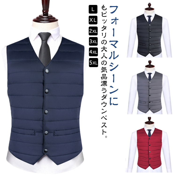 ダウンベスト メンズ 軽量 暖かい V トップス ベスト ジレ 豊富な品揃え ブラック グレー ネイビー ワインレッド L XL 2L 3L 4L 5L