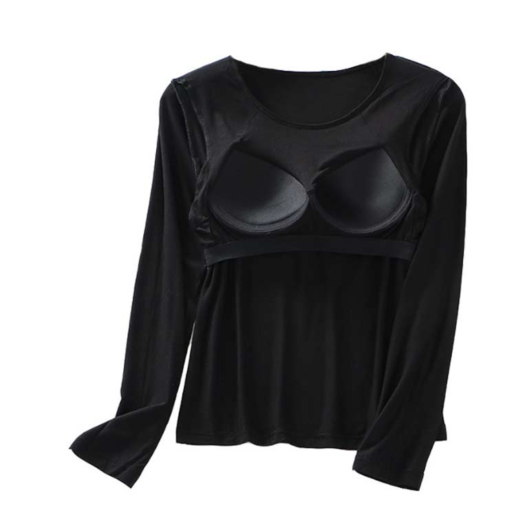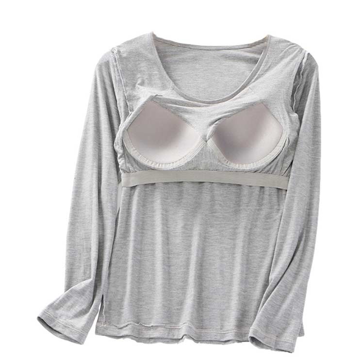 パット付長袖Tシャツ ロンT 締め付け レディース インナー 下着 ブラトップ 大人気! 白 灰色 黒 肌色 ピンク M L XL 2XL 3XL