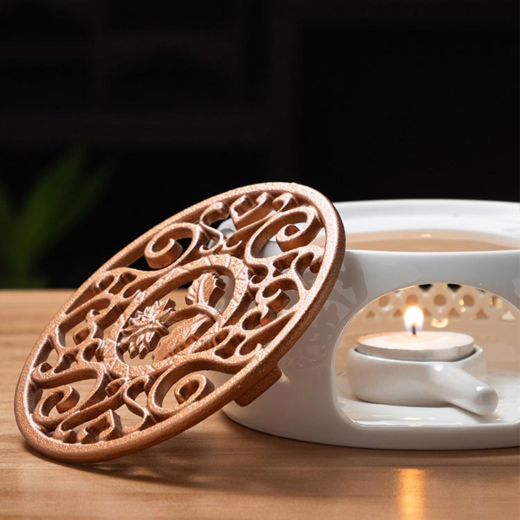 ろうそくを点けると、お茶、食べ物、コーヒーを長時間暖かく保ちます。上部の容器を均一に加熱できるため、ティーポットが焼けて黒くなるのを防ぐことができます。ベースの中央にキャンドル用の溝があり、非常に安全です。