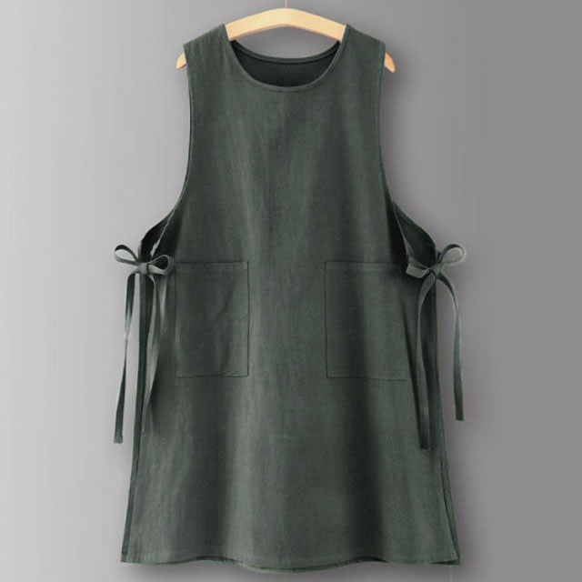 エプロンワンピース ノースリーブ ミド キッチン用品 食器 調理器具 続々登場 オフホワイト ネイビー グレー ダークグリーン