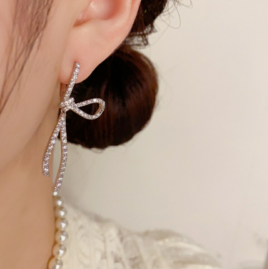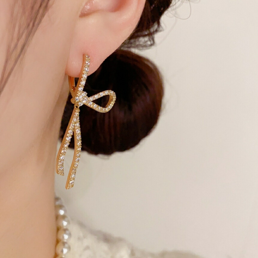 ビジューロングピアス リボンピアス メ ジュエリー アクセサリー 豊富な品揃え ゴールド シルバー