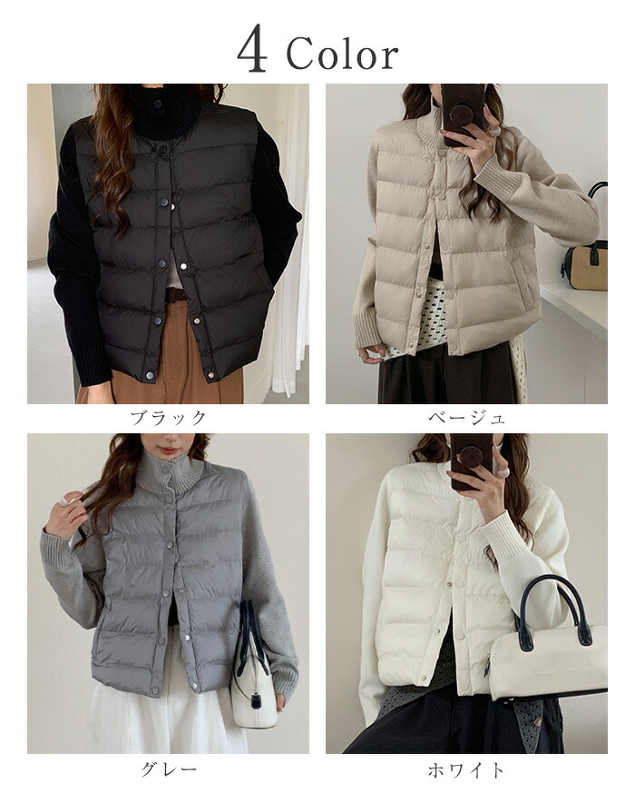 ライトダウン インナーダウン ダウンコ レディースファッション 早い者勝ち ホワイト ベージュ グレー ブラック S M L