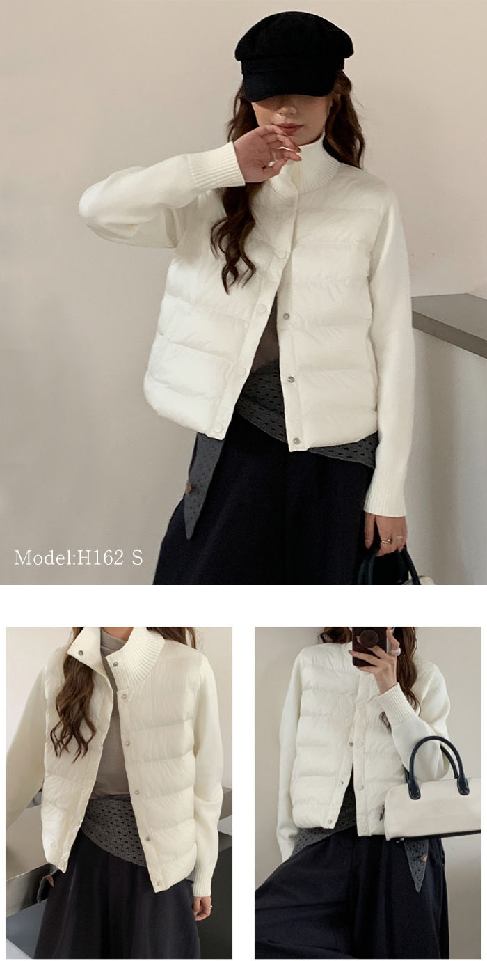 ライトダウン インナーダウン ダウンコート ダウンジャケット アウター 上着 ショートダウン レディース 異素材 ニット 中綿 軽量 暖かい 秋冬 大きいサイズ おしゃれ 上品 細見え 通勤 き 防寒