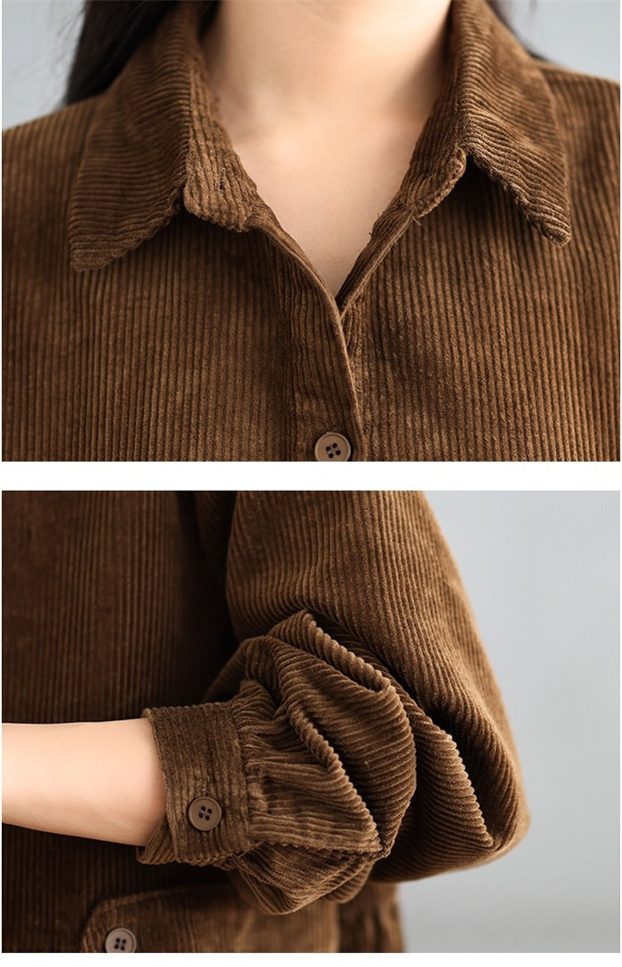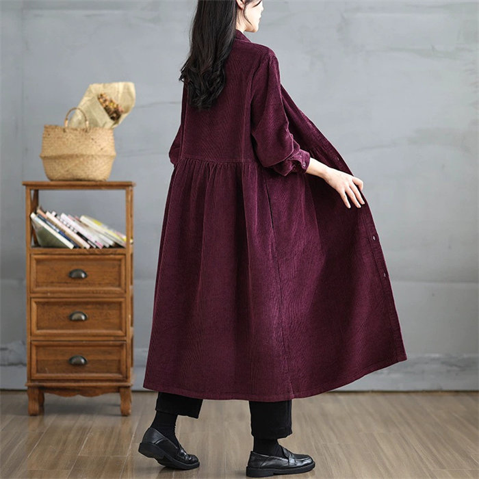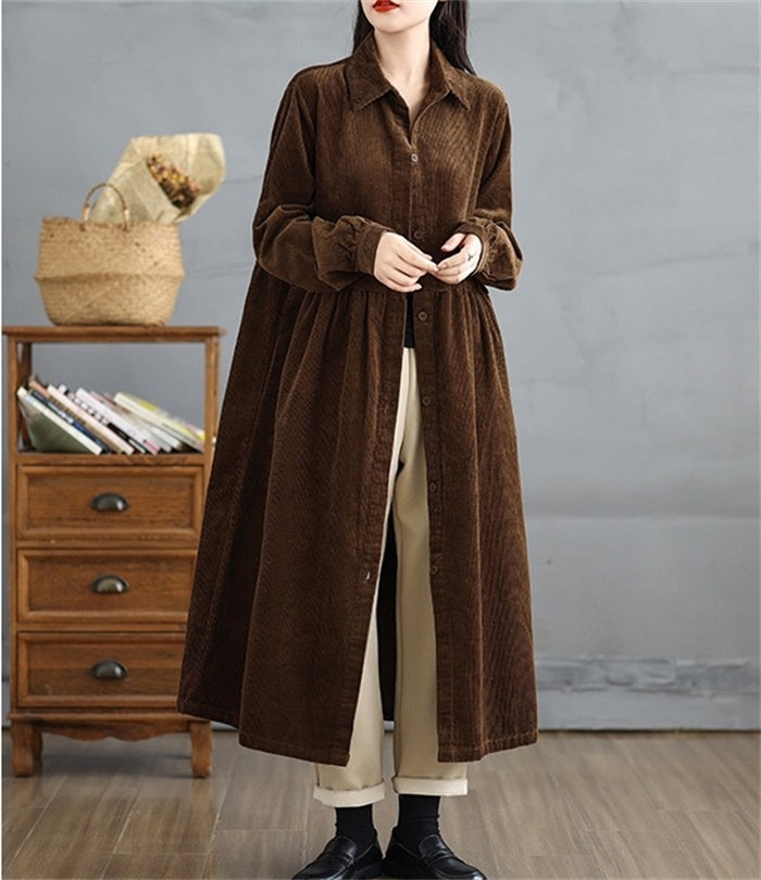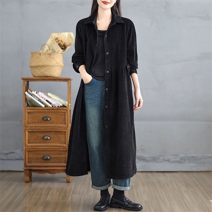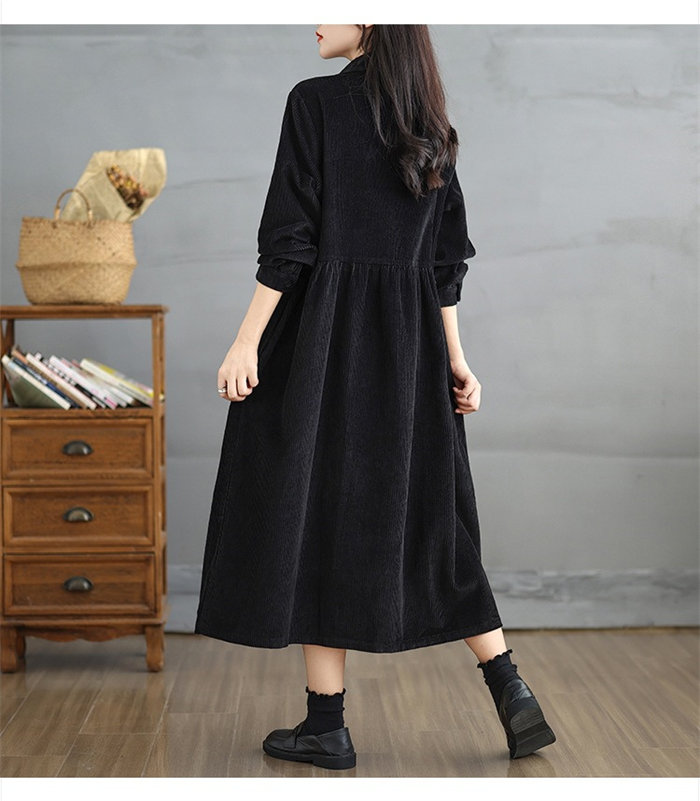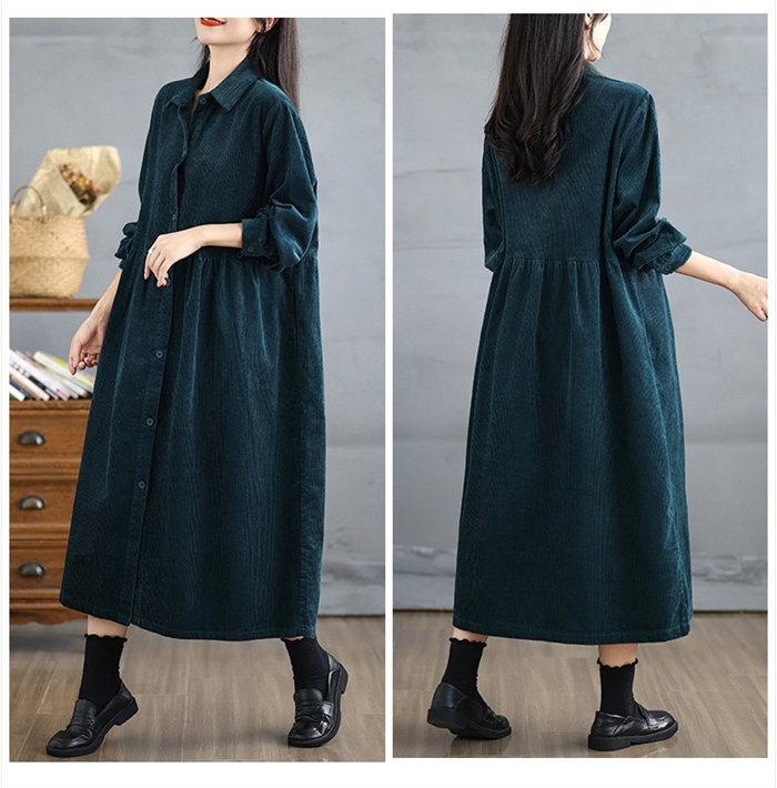 ロングワンピース コーデュロイ シャツ レディースファッション 続々登場 ブラック パープル キャメル ブルー M L XL 2XL