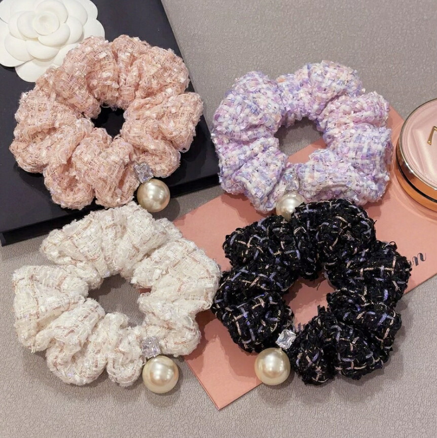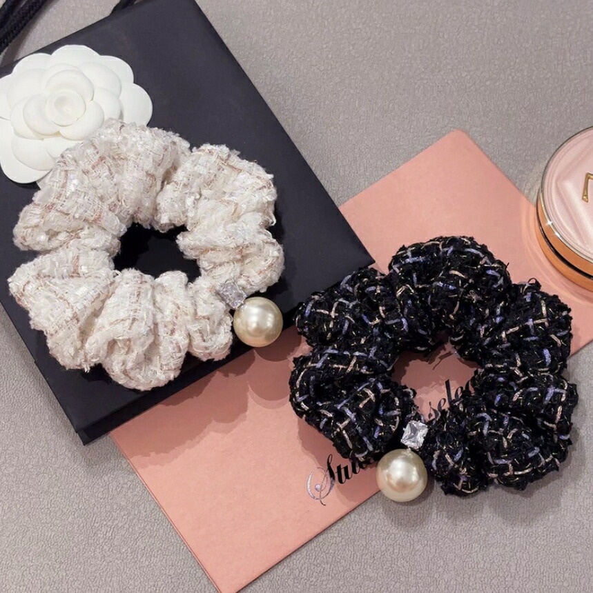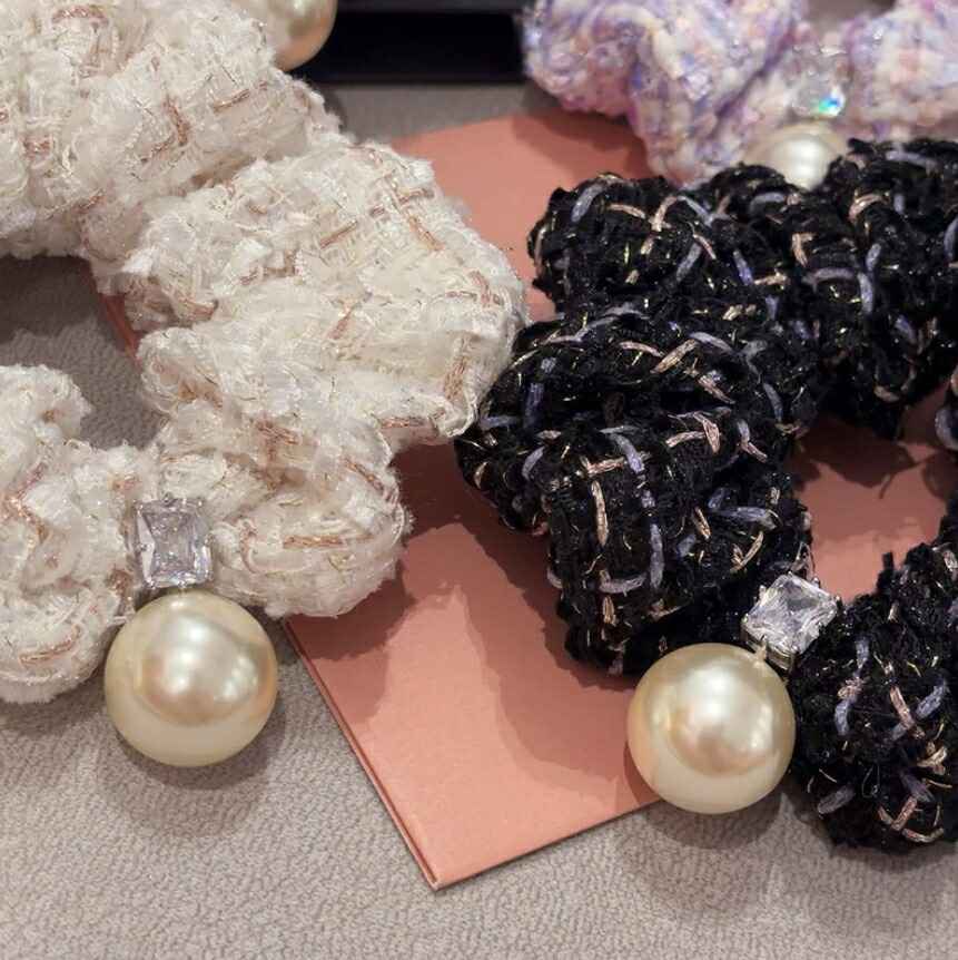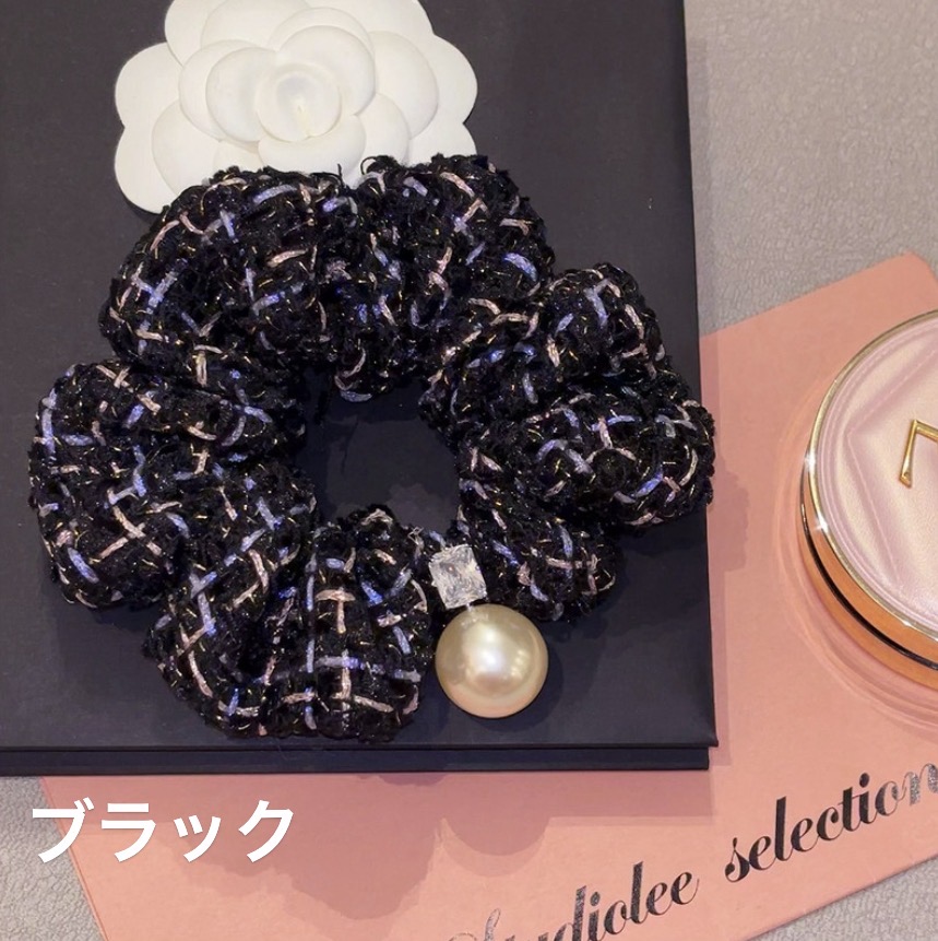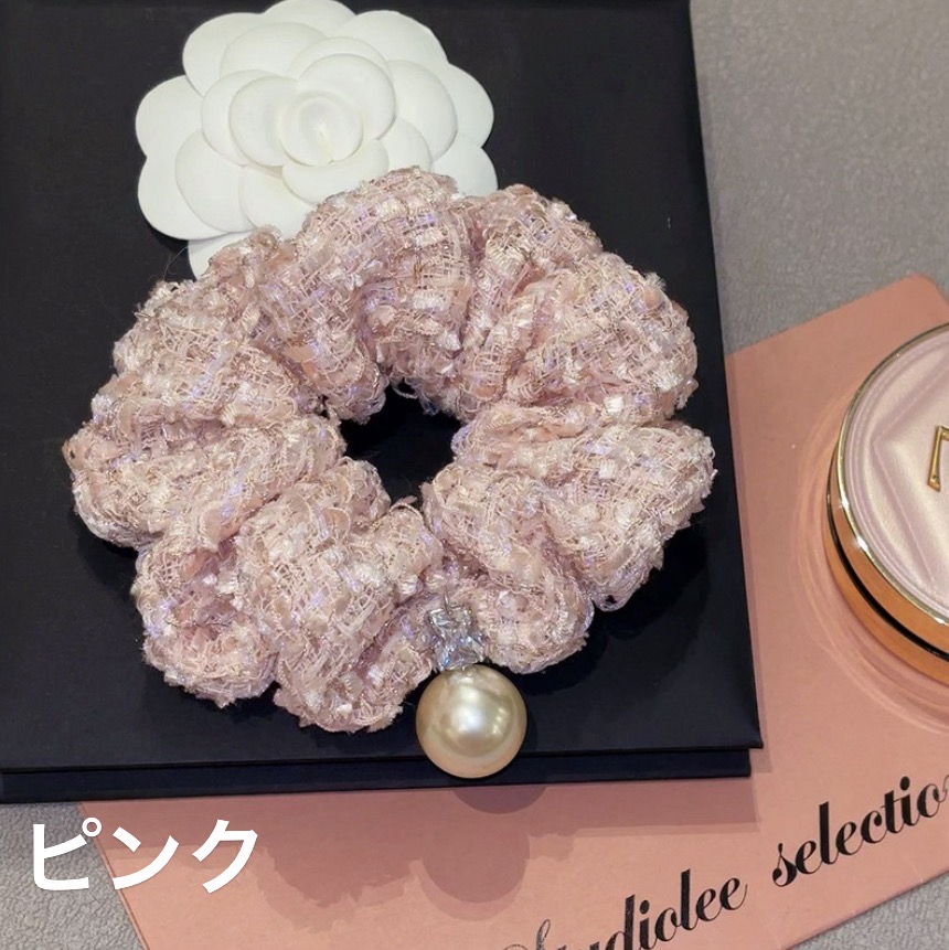 ラメツイードチェックシュシュ パールシ レディースジュエリー アクセサリー ヘアアクセサリー シュシュ 豊富 ピンク ブラック 紫色 ホワイト