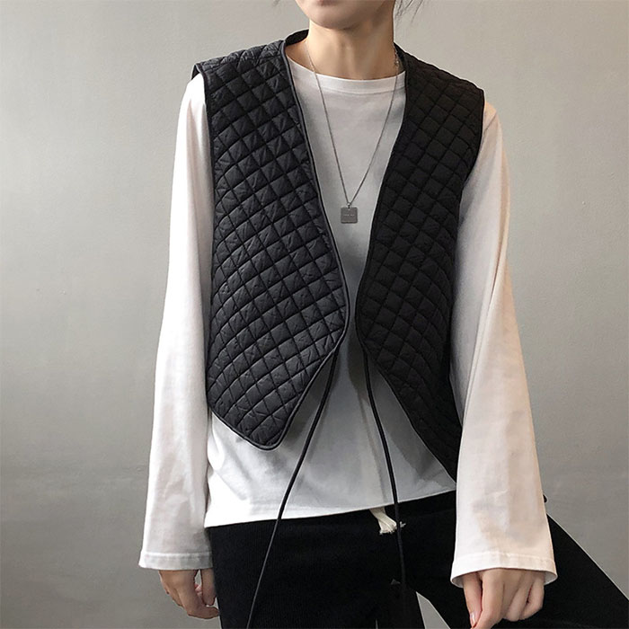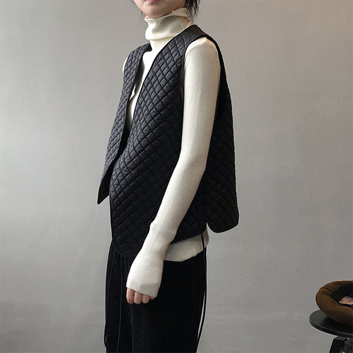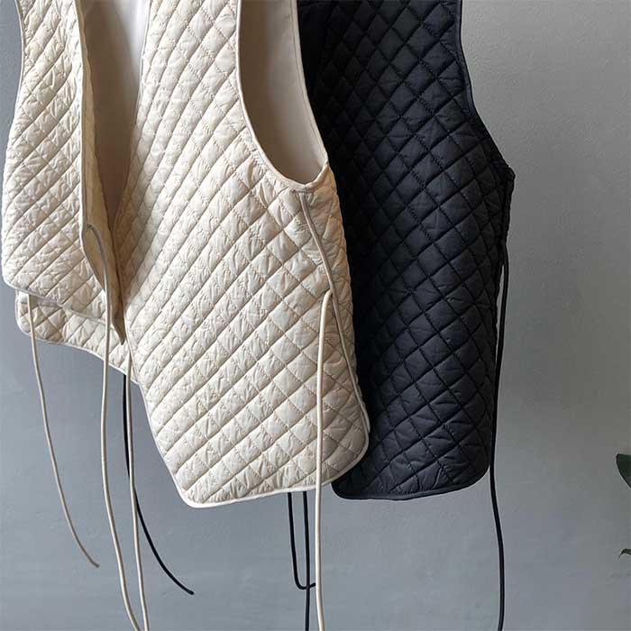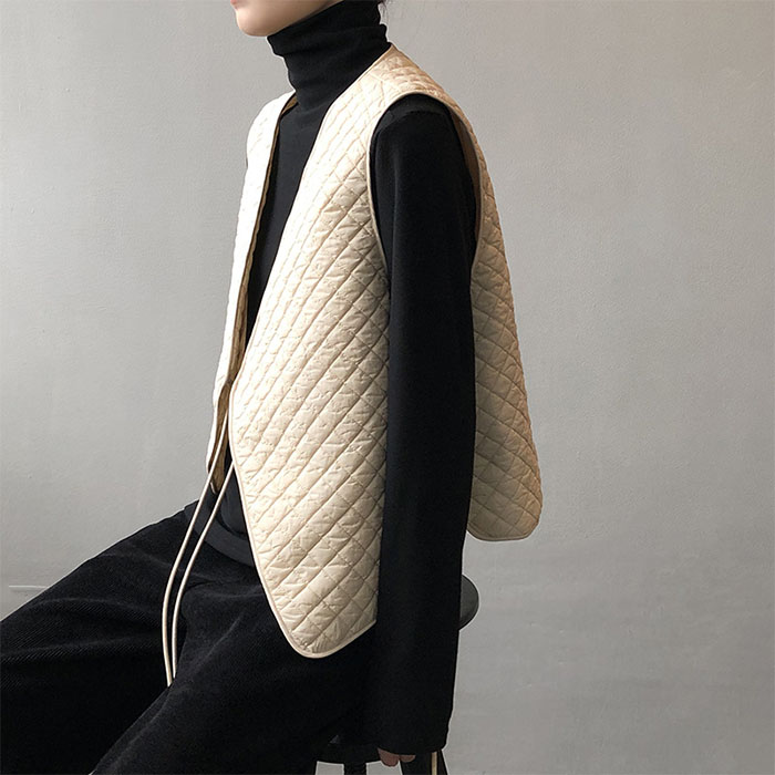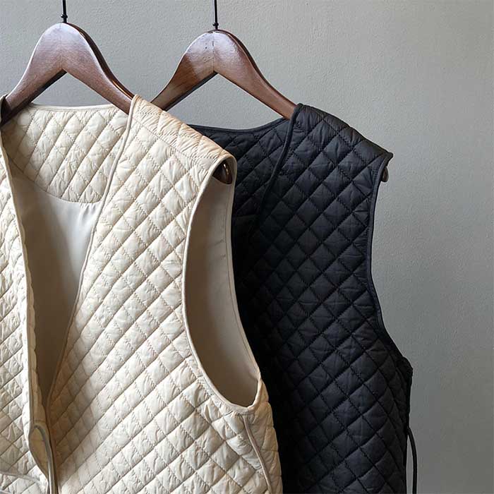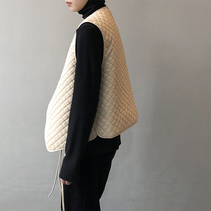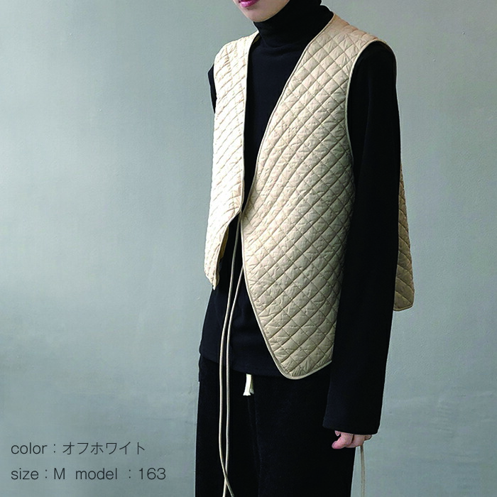ベスト レディース キルティング Vネ レディースファッション 早い者勝ち オフホワイト ブラック M L