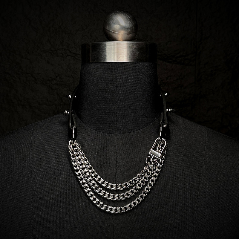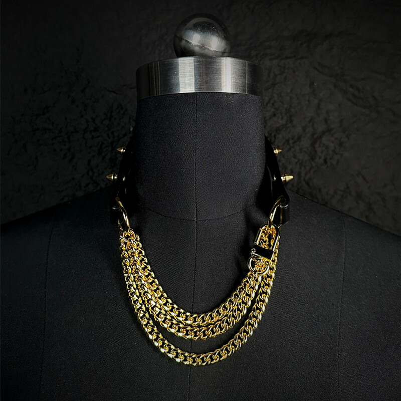 チェーンチョーカー パンク リベット ジュエリー アクセサリー 続々入荷中 シルバー ゴールド M: 29.97cm-37.85cm L: 36.83cm-43.94cm