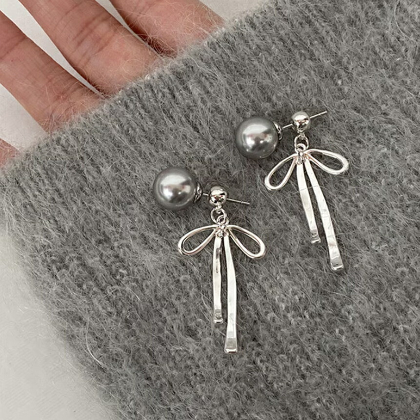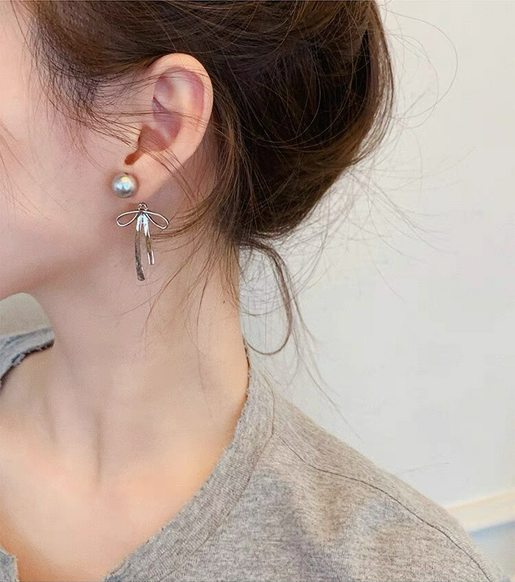 ピアス メタルロングリボンピアス パールピアス シルバーバックキャッチピアス おしゃれ シンプル レデイースアクセサリー 大人可愛い