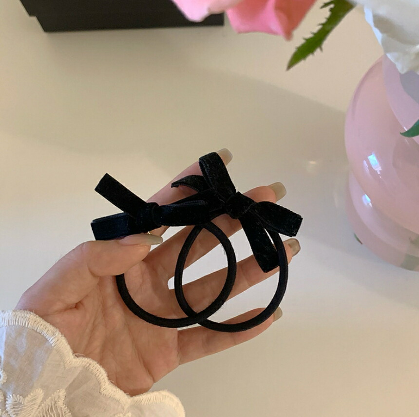 ベルベットリボンヘアゴム2点セット ベロアリボンヘアゴム ブラック 秋冬 大人可愛い レディースヘアアクセサリー おしゃれ