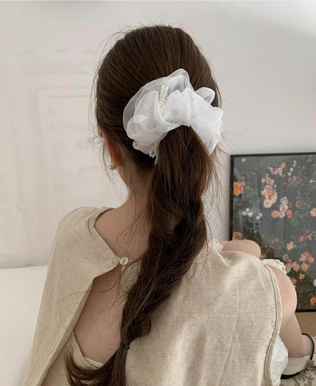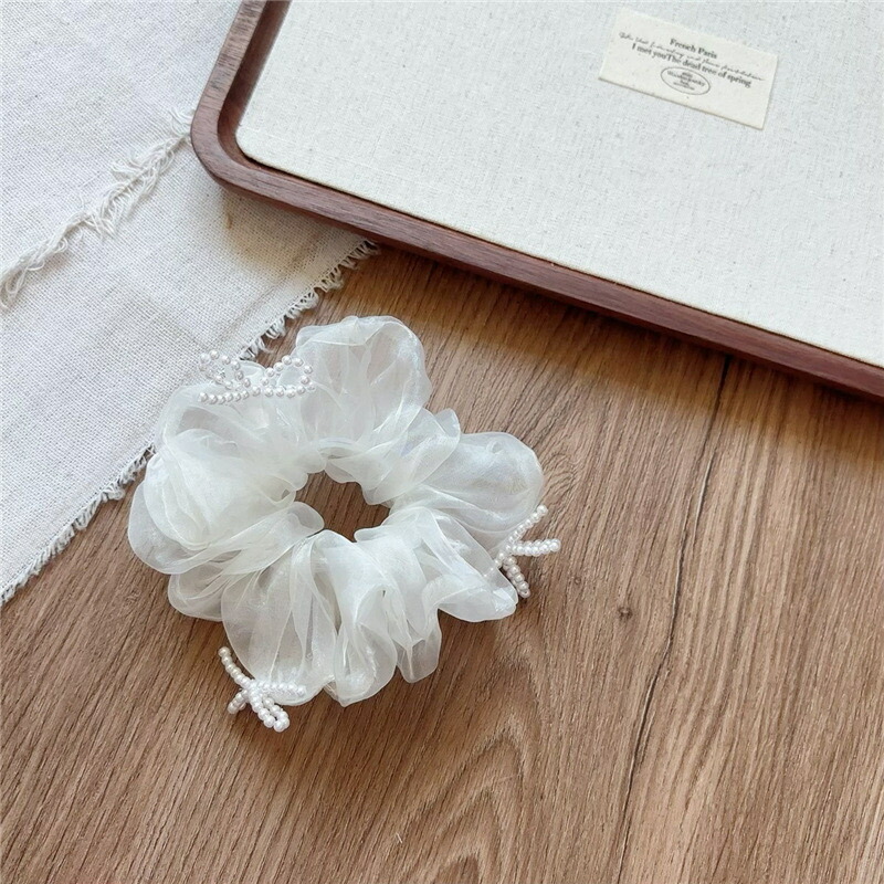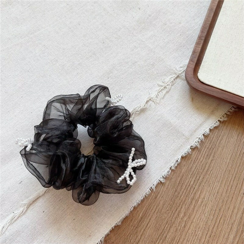 リボンモチーフシュシュ オーガンジーシ レディースジュエリー アクセサリー ヘアアクセサリー シュシュ 早い者勝ち ホワイト ブラック