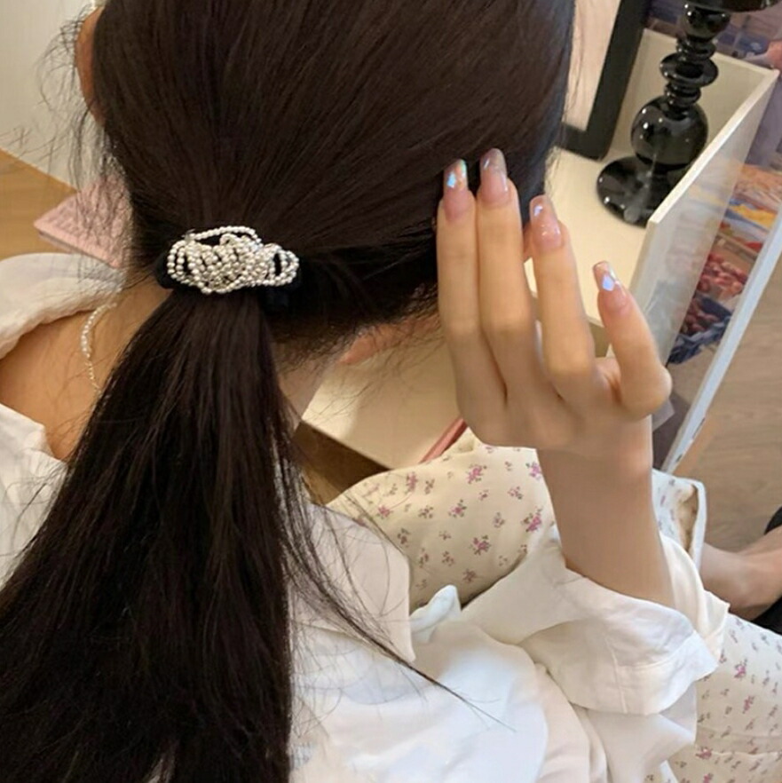 ビーズスリムシュシュ ヘアゴム キラキラ シュシュ おしゃれ 大人可愛い レディースヘアアクセサリー