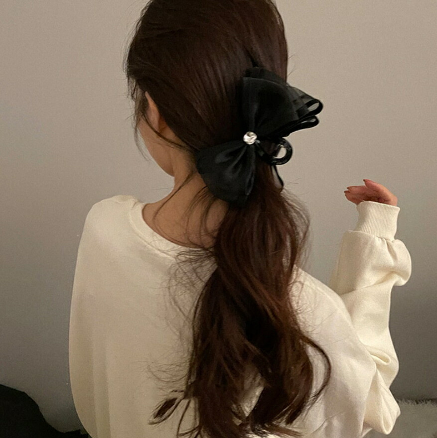 オーガンジーリボンバンスクリップ ビジ レディースジュエリー アクセサリー ヘアアクセサリー バレッタ 豊富な品揃え