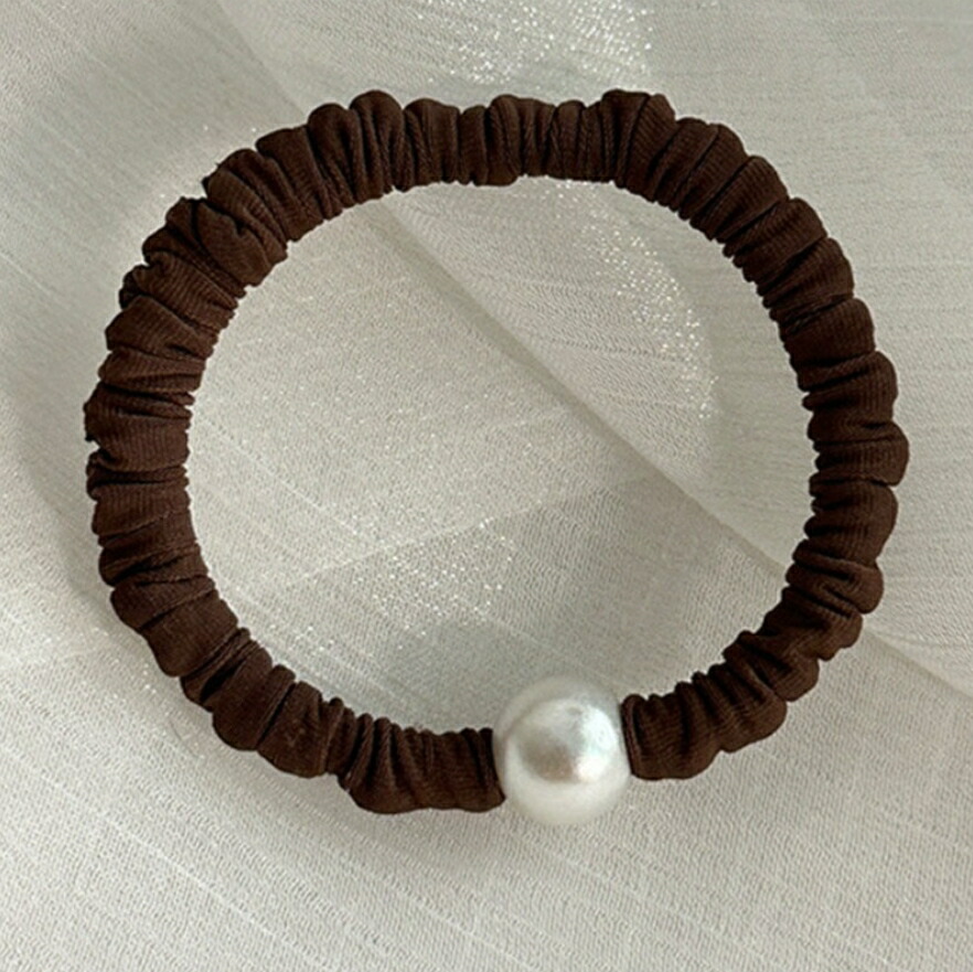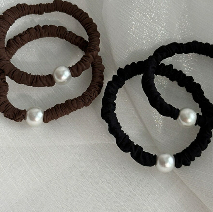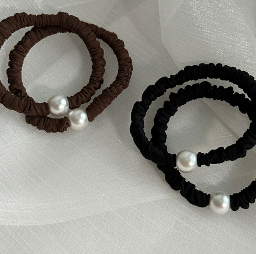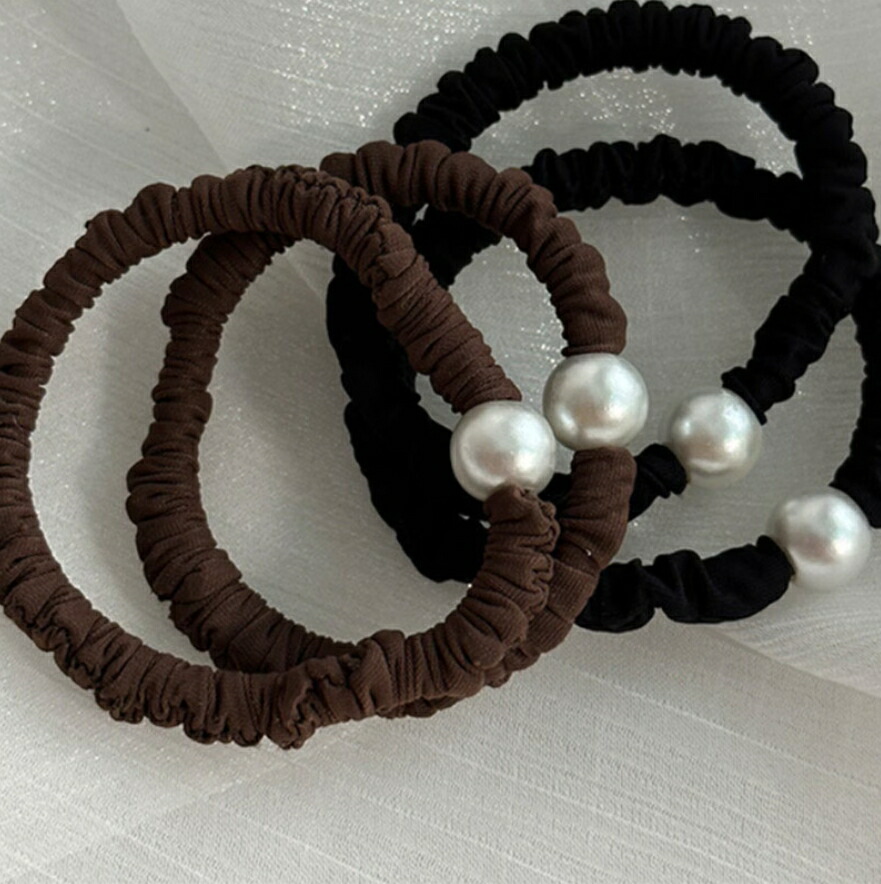 パールヘアゴム スリムシュシュ2点セッ ジュエリー アクセサリー 続々登場 ブラウン ブラック
