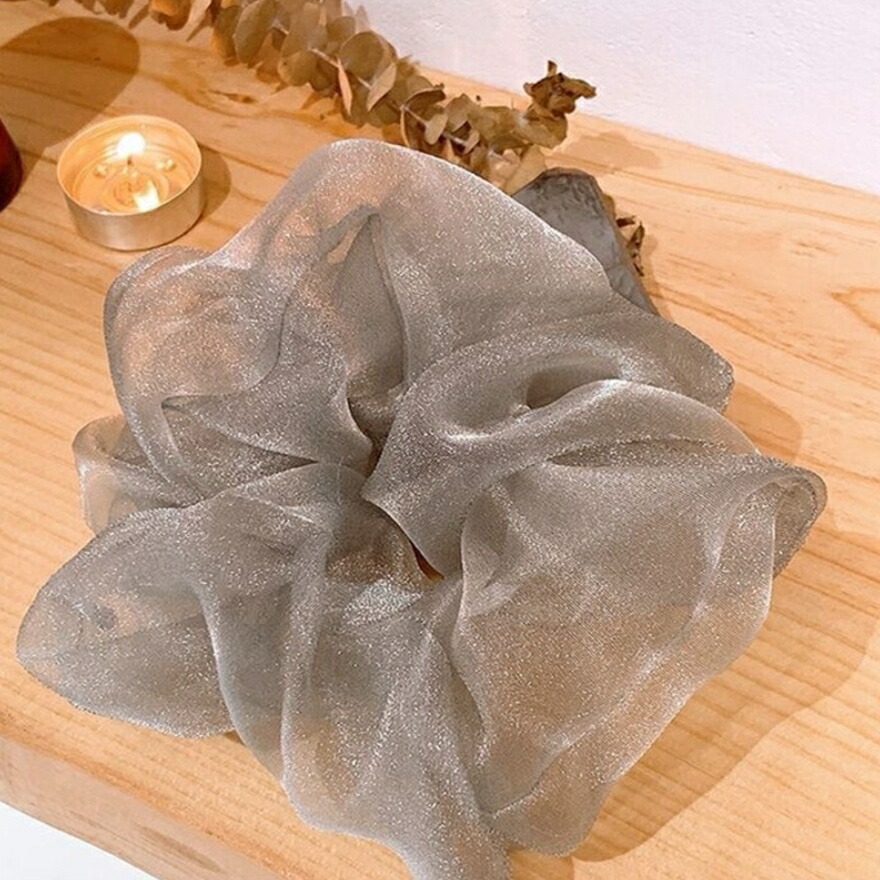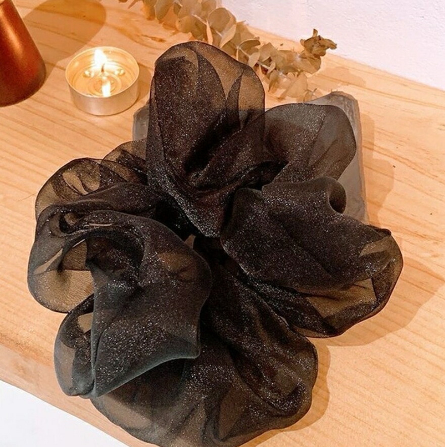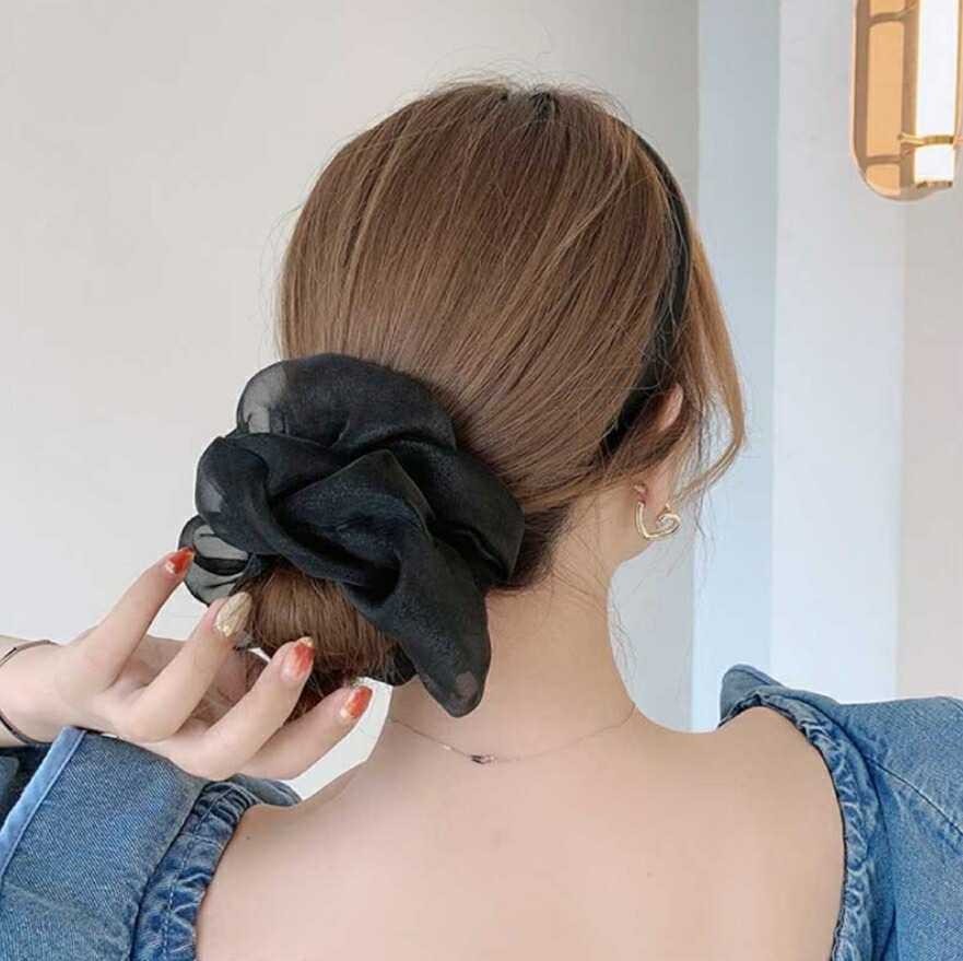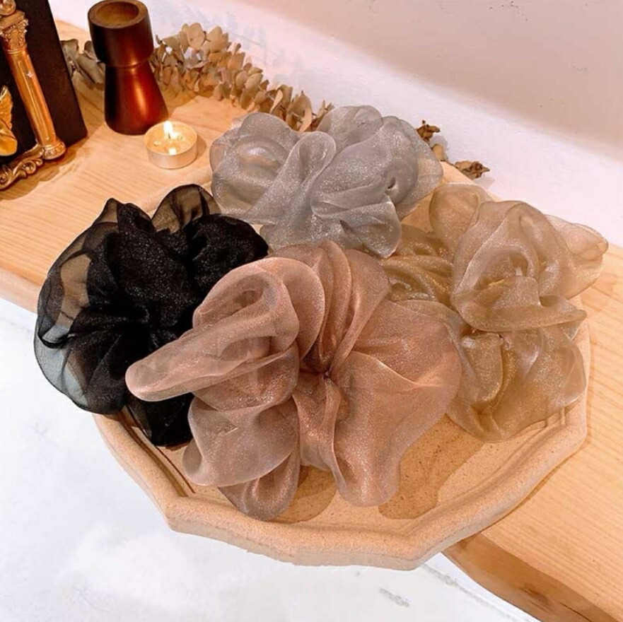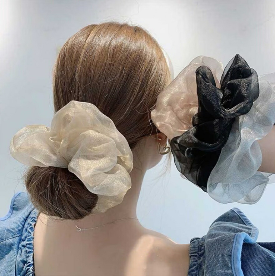 オーガンジーシュシュ4点セット ビッグシュシュ ヘアゴム ボリューム シースルー 光沢 レディースヘアアクセサリー 春夏 おしゃれ 大人可愛い