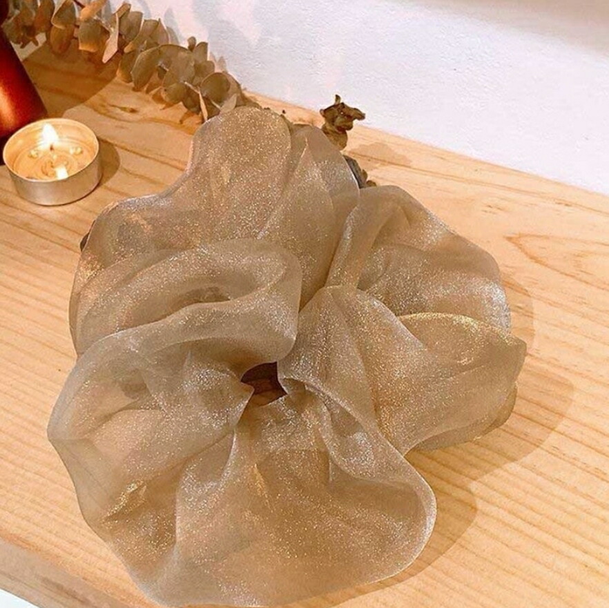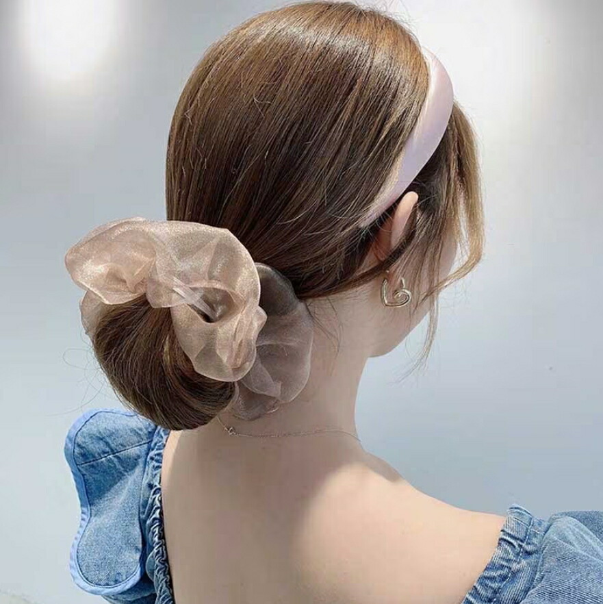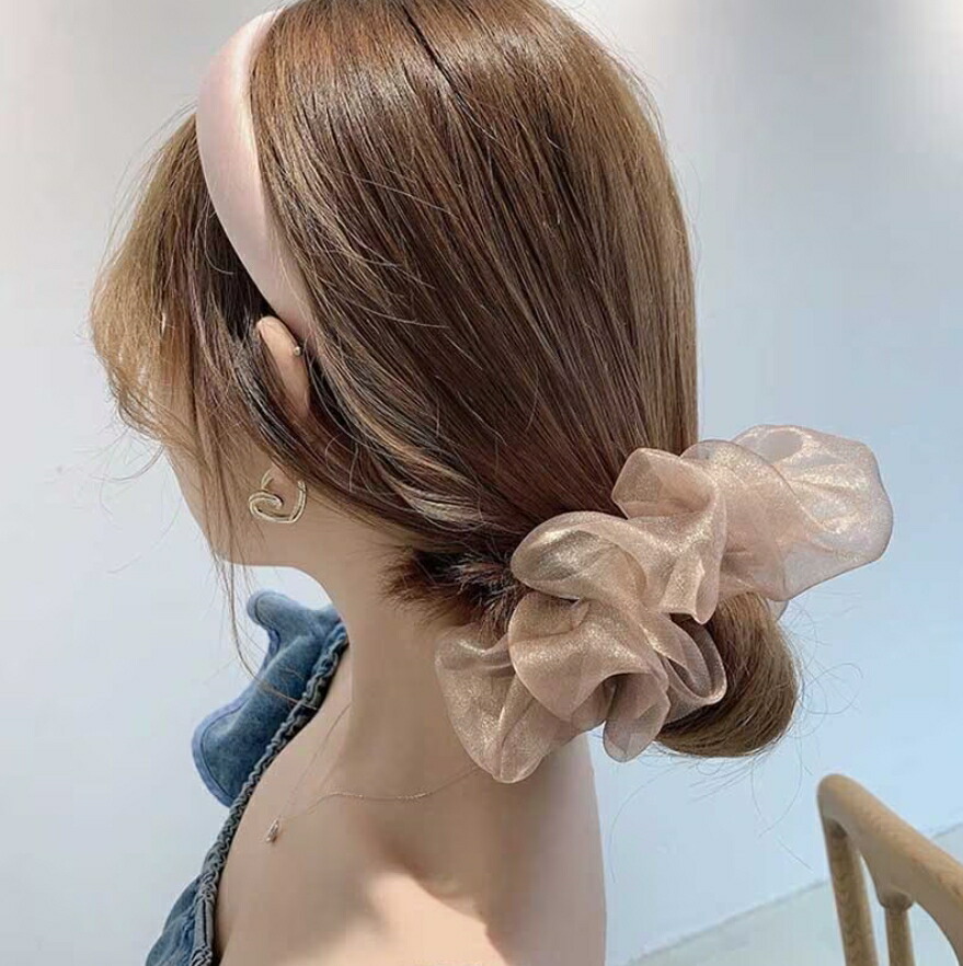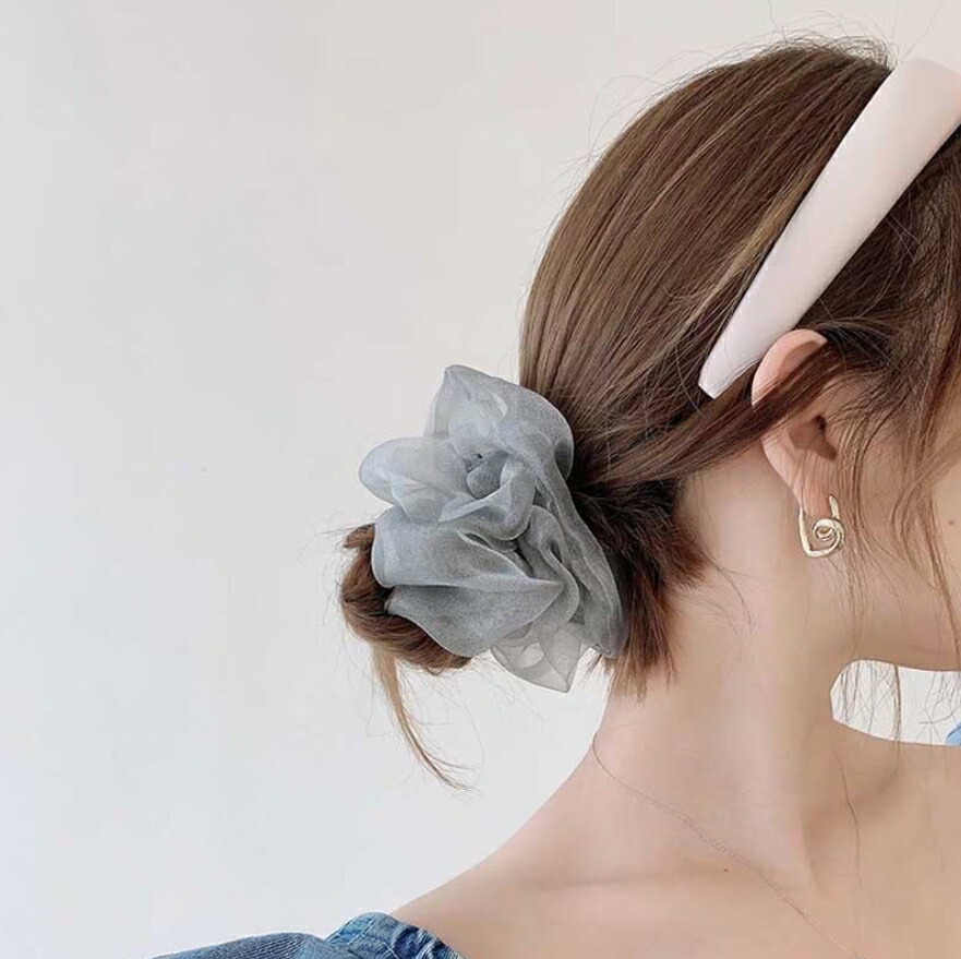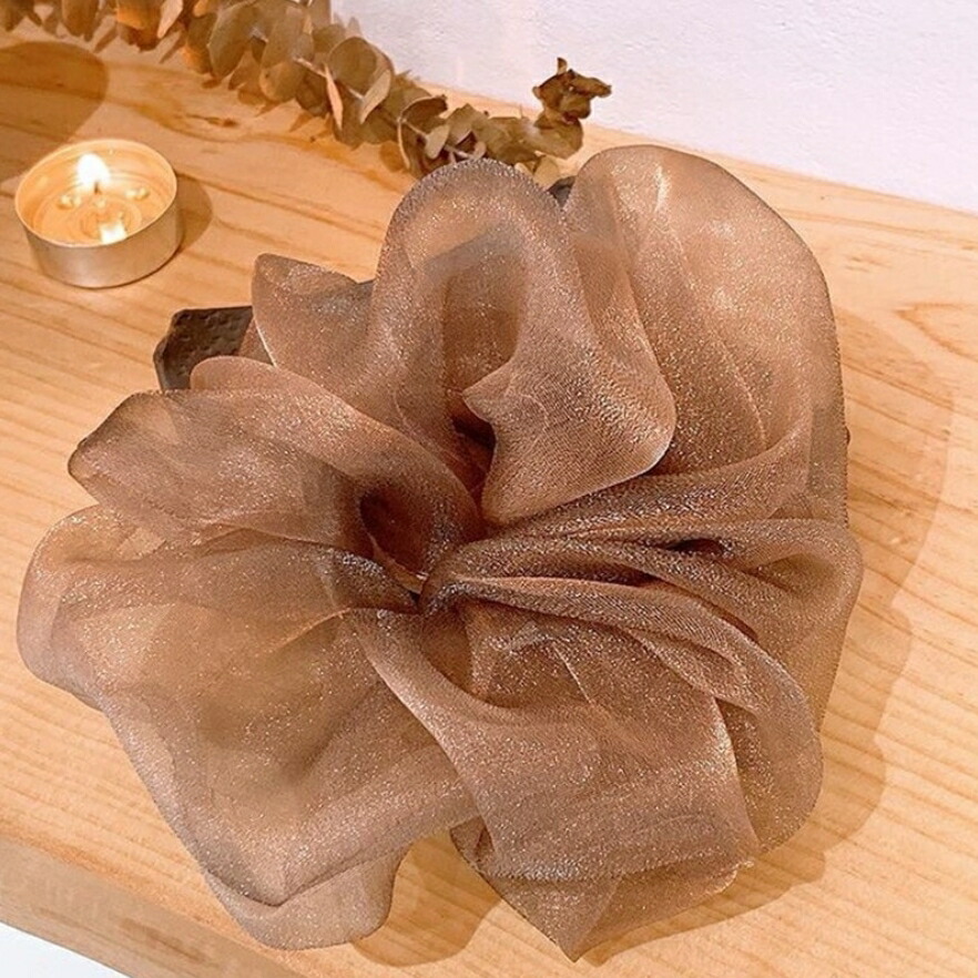 オーガンジーシュシュ4点セット ビッグシュシュ ヘアゴム ボリューム シースルー 光沢 レディースヘアアクセサリー 春夏 おしゃれ 大人可愛い