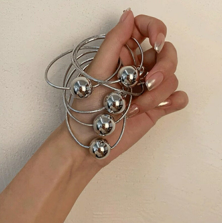 大きめのメタルボールがスタイリングのアクセントに
