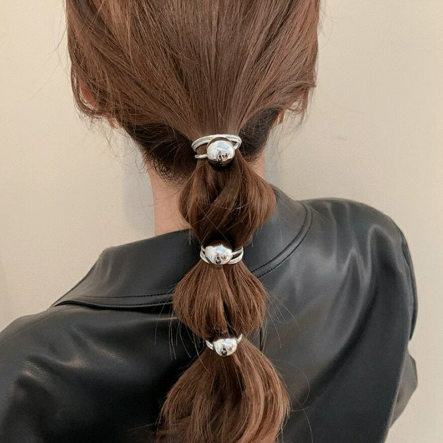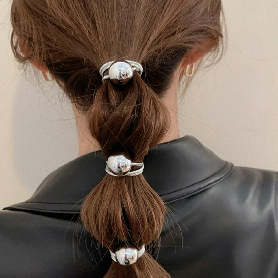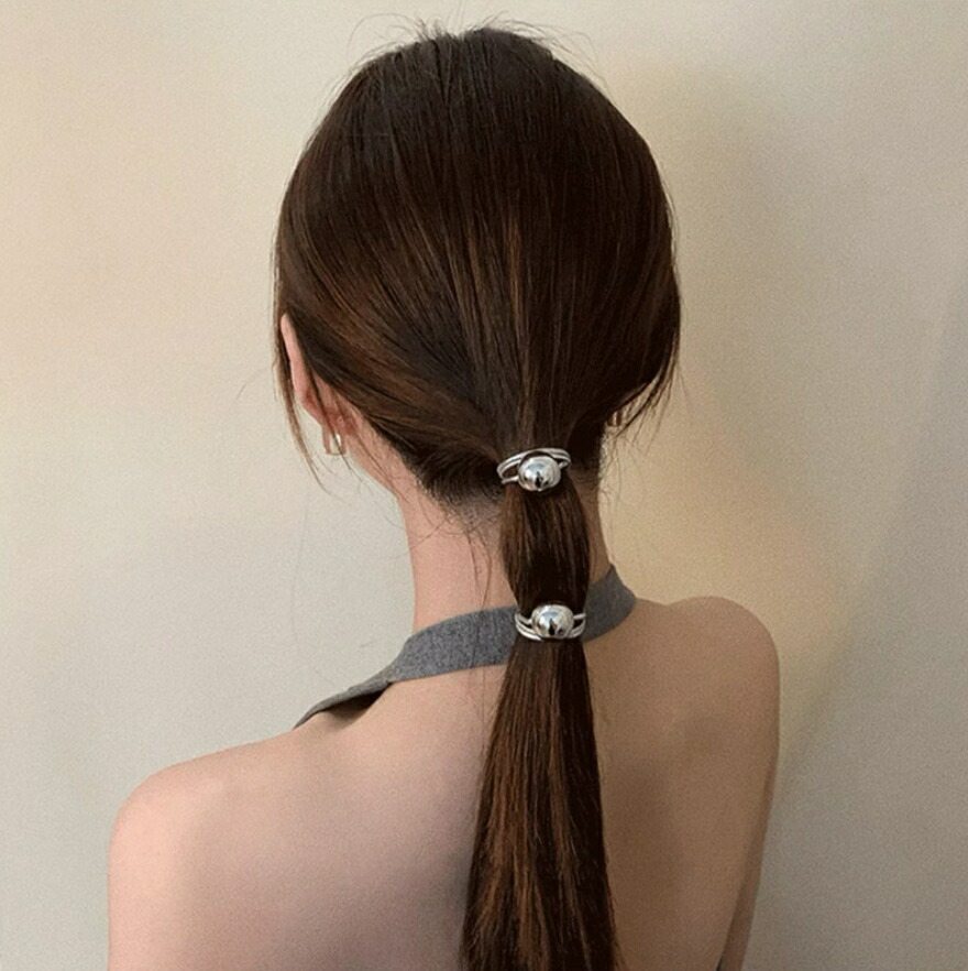 メタルボールヘアゴム 2点セット シル レディースジュエリー アクセサリー ヘアアクセサリー ヘアゴム 続々登場