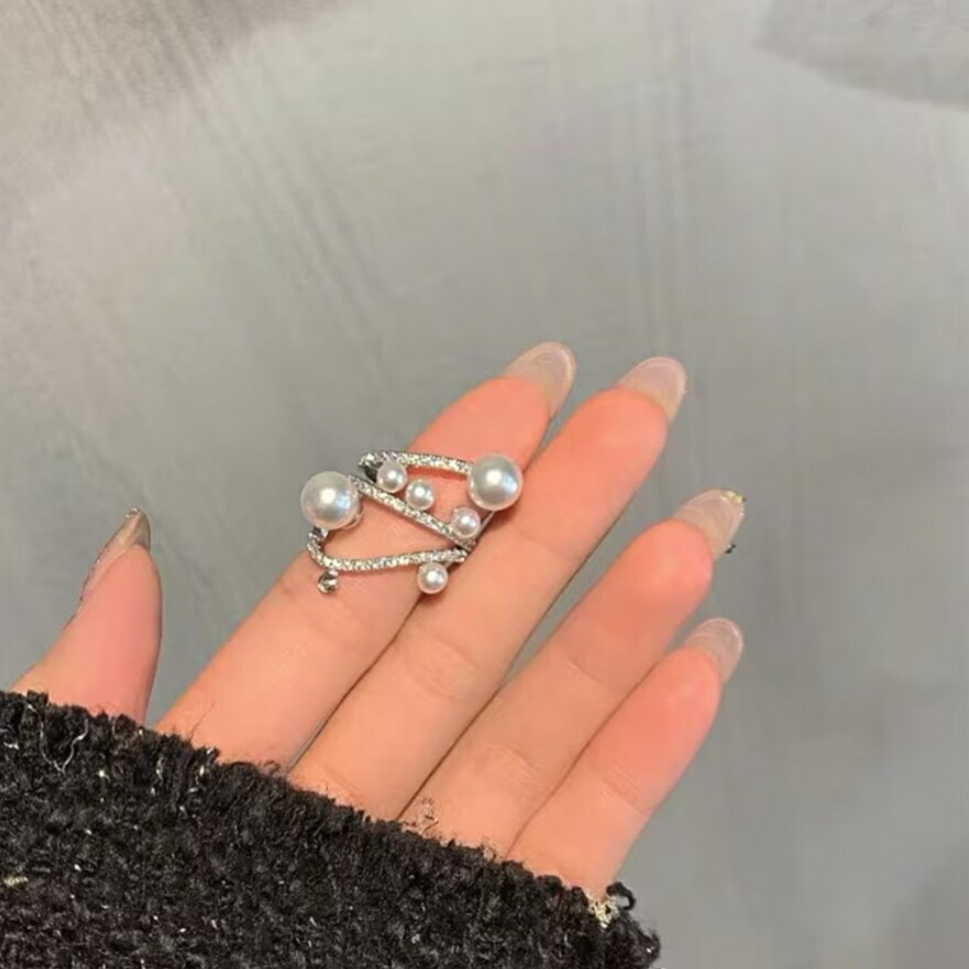 パールデザインリング 指輪 リング おしゃれ シルバー フリーサイズ アクセサリー レディースジュエリー 調節可能ジュエリー