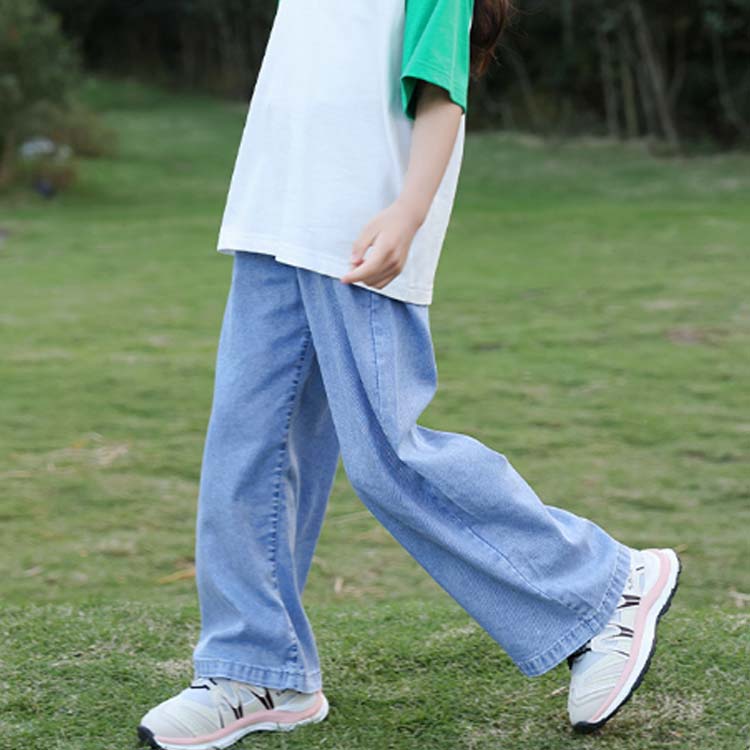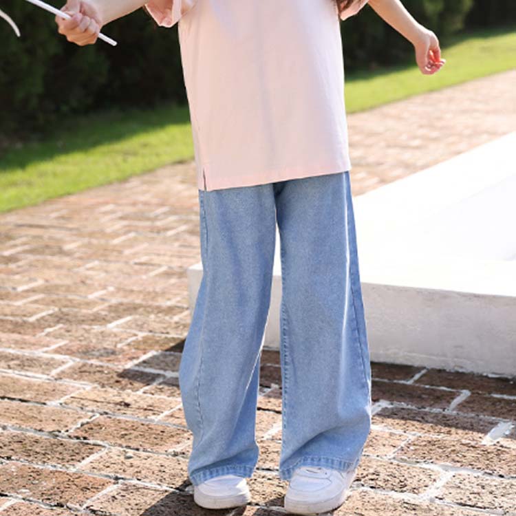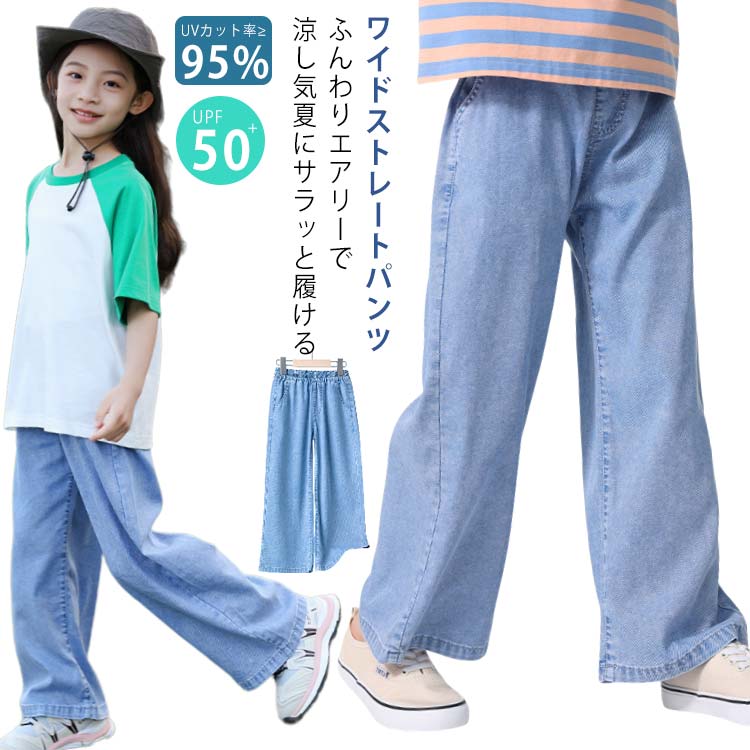 110~160cm UPF50+ ジーパン ボトムス 薄手 ワイド 150 冷感 女の子 120 130 140 110 子供服 デニム 子供 夏 ストレート 大きいサイズ 涼しい デニ ワイドパンツ