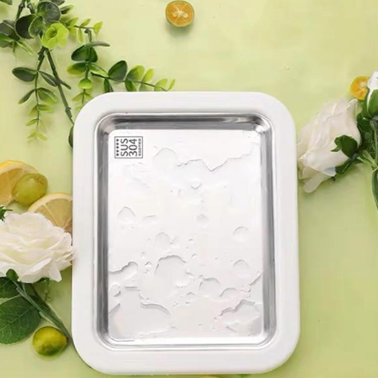 アイスクリームロールトレイは食品グレードのステンレス鋼で作られ、スクレーパーは食品グレードのPP素材で作られており、安全で耐久性があり、環境に優しいです。