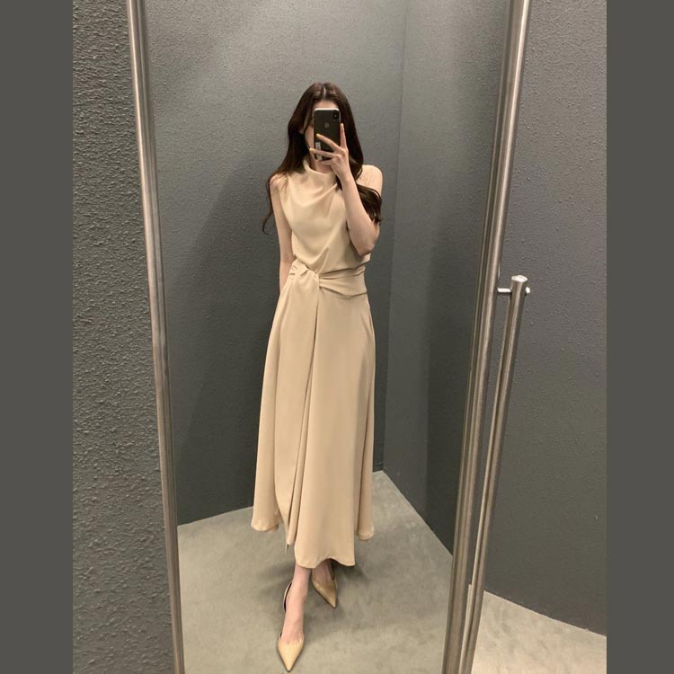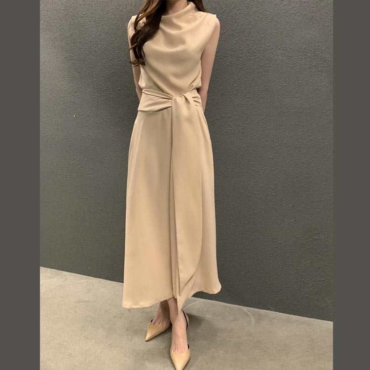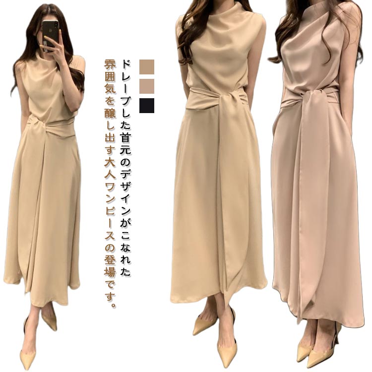 上品 ドレープネック ワンピース ロン レディースファッション 新登場! ベージュ ピンク ネイビー S M L XL