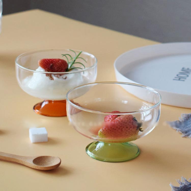 ポップなカラーがレトロ感を感じさせる、かわいいガラスのアイスカップ。