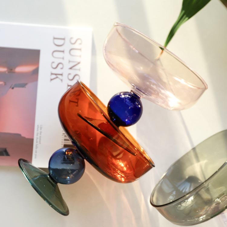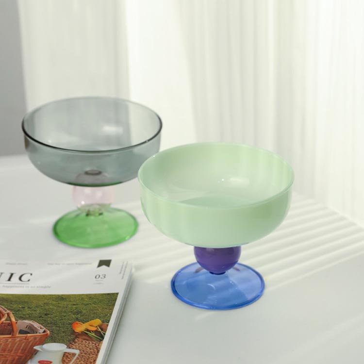 ポップなカラーがレトロ感を感じさせる、かわいいガラスのアイスカップ。