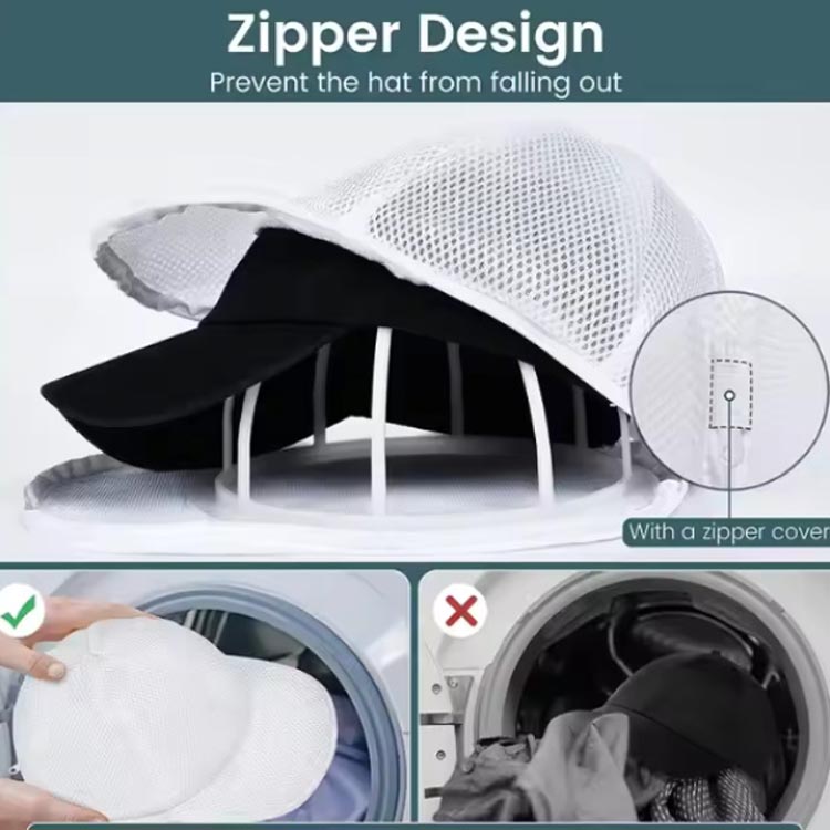【帽子洗濯用】野球帽ウォッシャー はアップグレードされたデザインが特徴で、メッシュランドリーバッグが付属しており、キャップワッシャーを洗濯機内で閉じた状態に保ち、キャップが落ちるのを防ぎます。平らな帽子や湾曲した帽子に最適です。