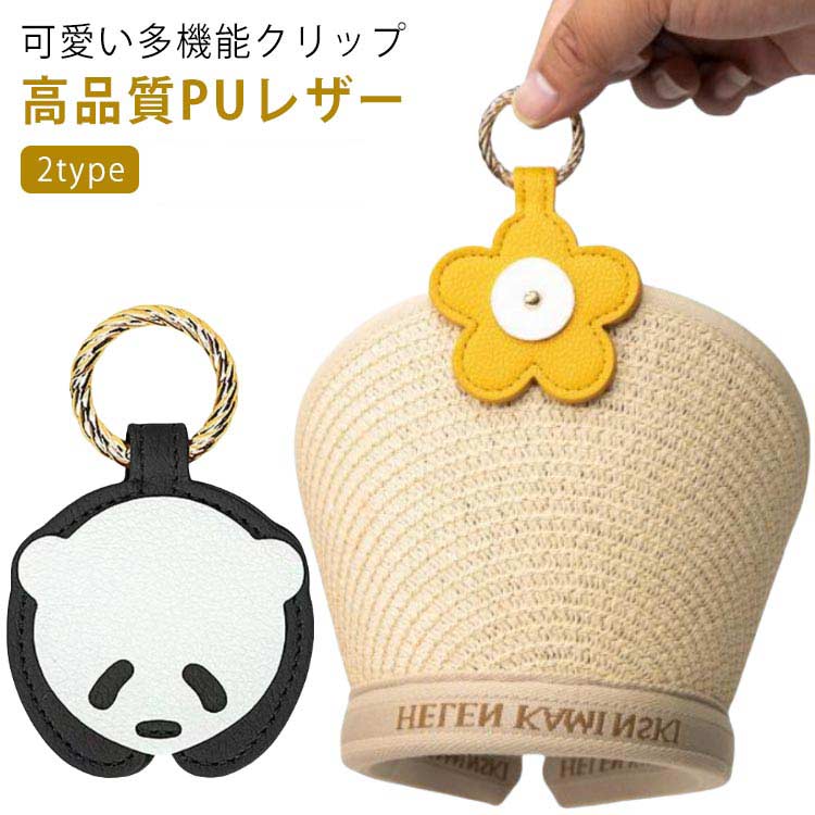 花 可愛い レザー ハットクリップ 強 バッグ 小物 ブランド雑貨 続々登場 花型ブラウン 花型イエロー 花型ピンク 花型ホワイト パンダ型ブラック パンダ型ブラウン