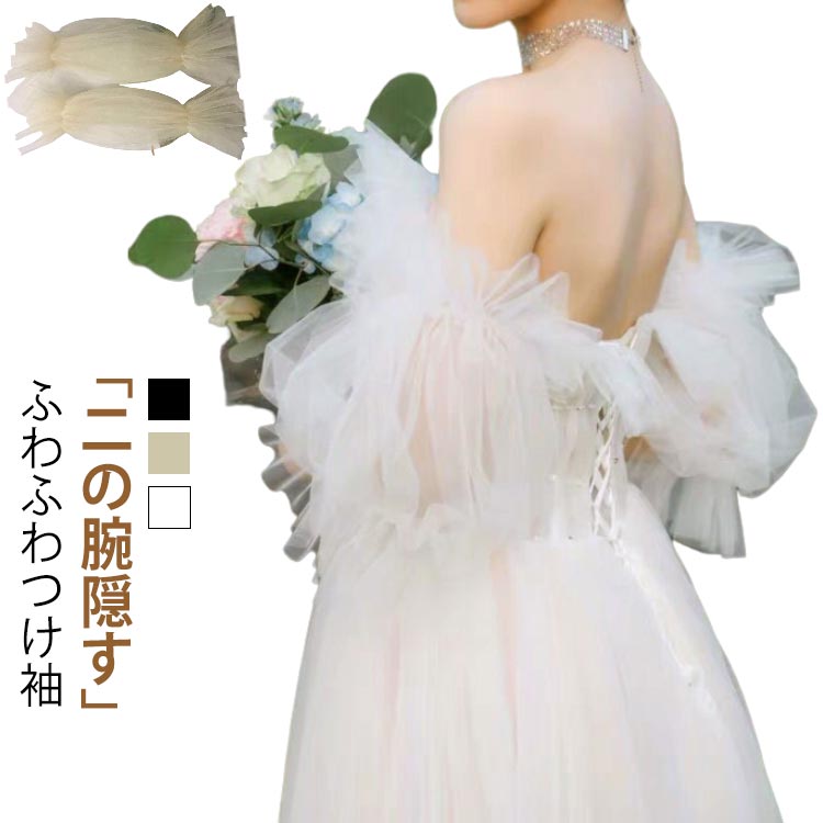 アームカバー ふんわり 二の腕 ふわふ ウェディング小物 その他 通販 ブラック オフホワイト シャンパン