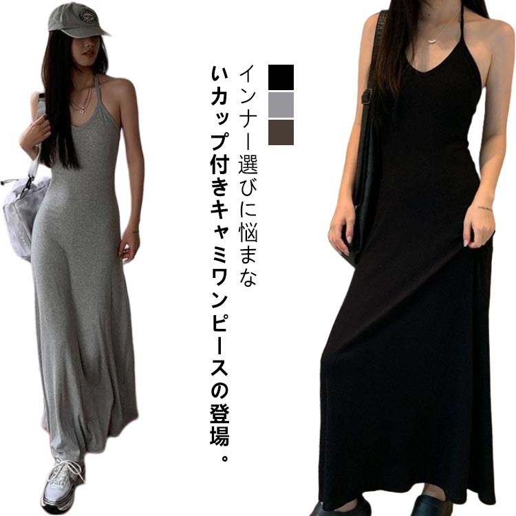 ロングワンピース キャミワンピ キャミ レディースファッション 超目玉商品 ブラック ライトグレー ダークグレー S M L XL 2XL