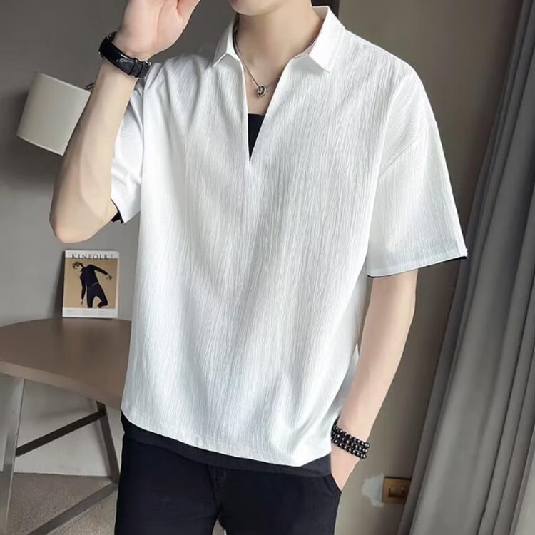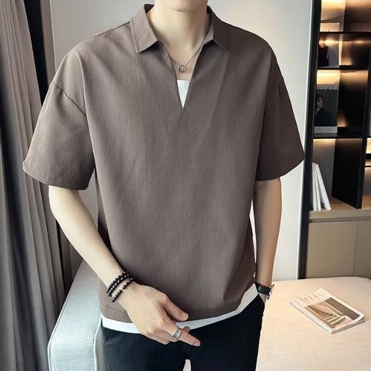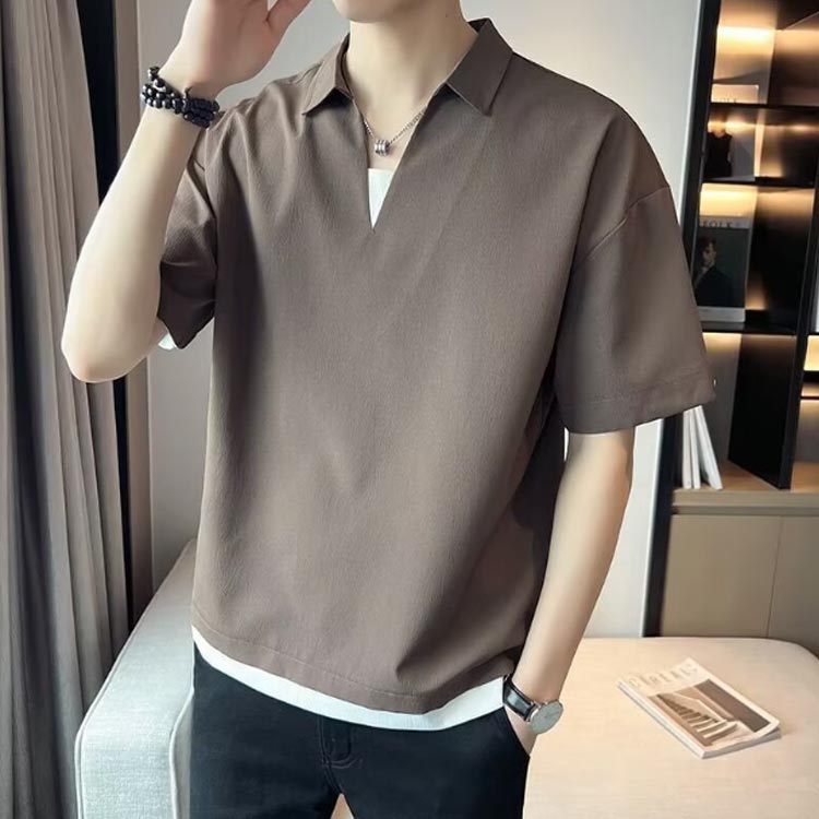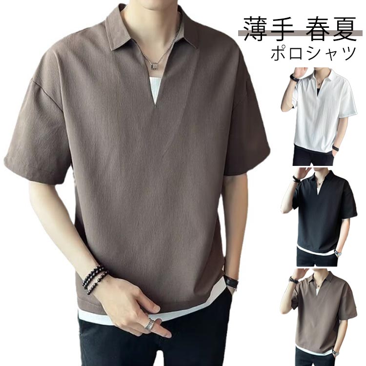 半袖ポロシャツ Vネック 重ね着 スリ トップス ポロシャツ 通販 ブラウン ホワイト ブラック M L XL 2XL 3XL