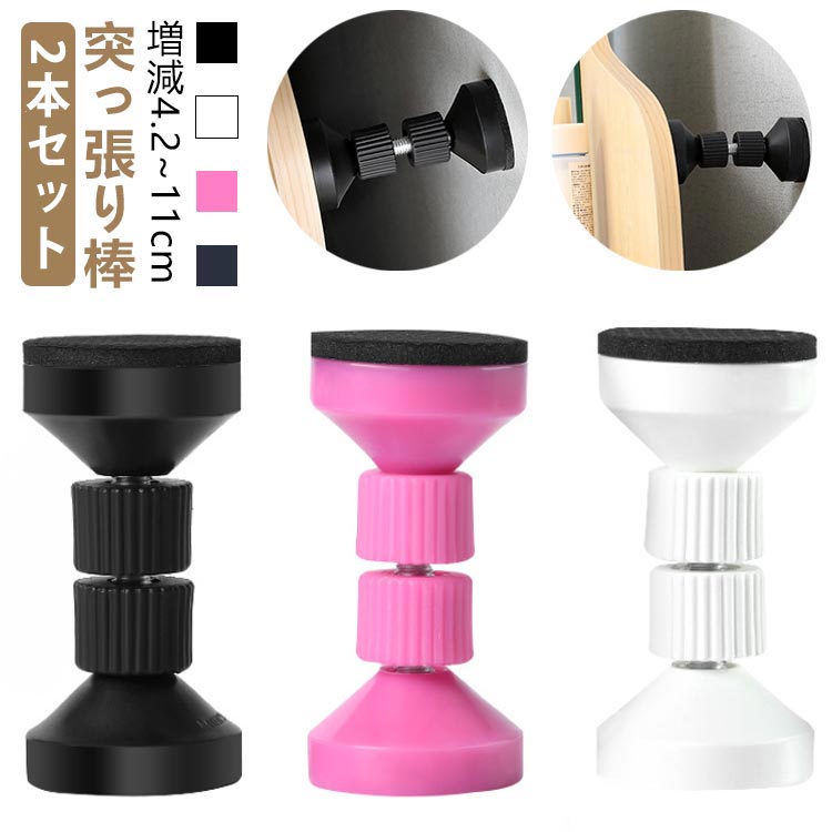 突っ張り棒 保護パッド 2本セット 家具転倒防止 伸縮 テーブル 両面テープ付き 地震対策 冷蔵庫 高さ4.2~11cm 防災グッズ 取付簡単 転倒防止 狭い隙間用 タンス 家具固定用 食 耐震ポール