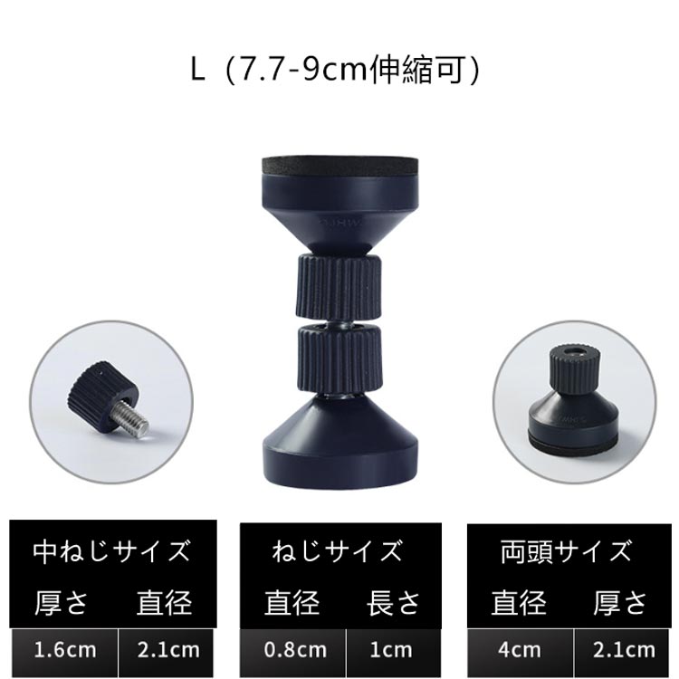 必要に応じてナットを出し入れすることで、高さを自由に調整できます。適用高さ4.2~11cmパッケージには2つの組み立てられた防振ツールが含まれています。ステッカーのカバーを外して好きな場所に貼り付けるだけです。非常に粘着性があるため、滑ることはありません。次に、ネジを緩めたり増やしたりして長さを調整し、しっかりと固定します。