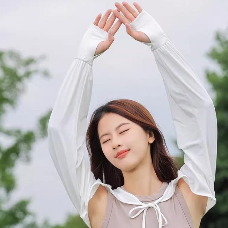 繊維自体にUVカット効果のある物質を含ませることで紫外線を吸収して熱や光に変換することで肌を守っています。
