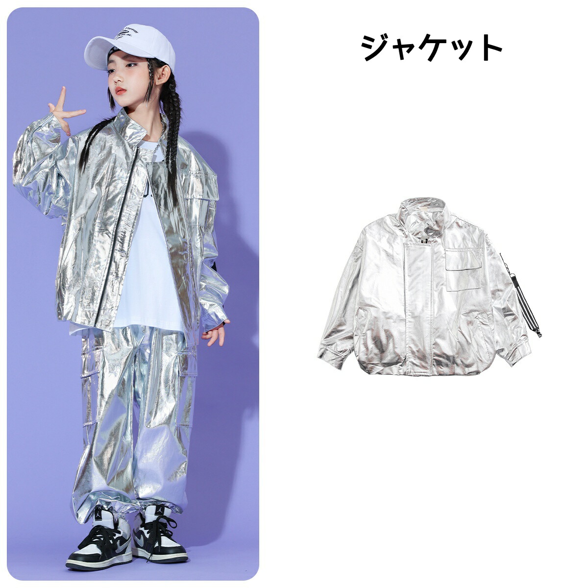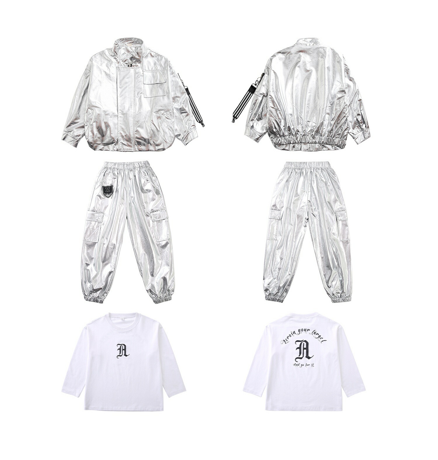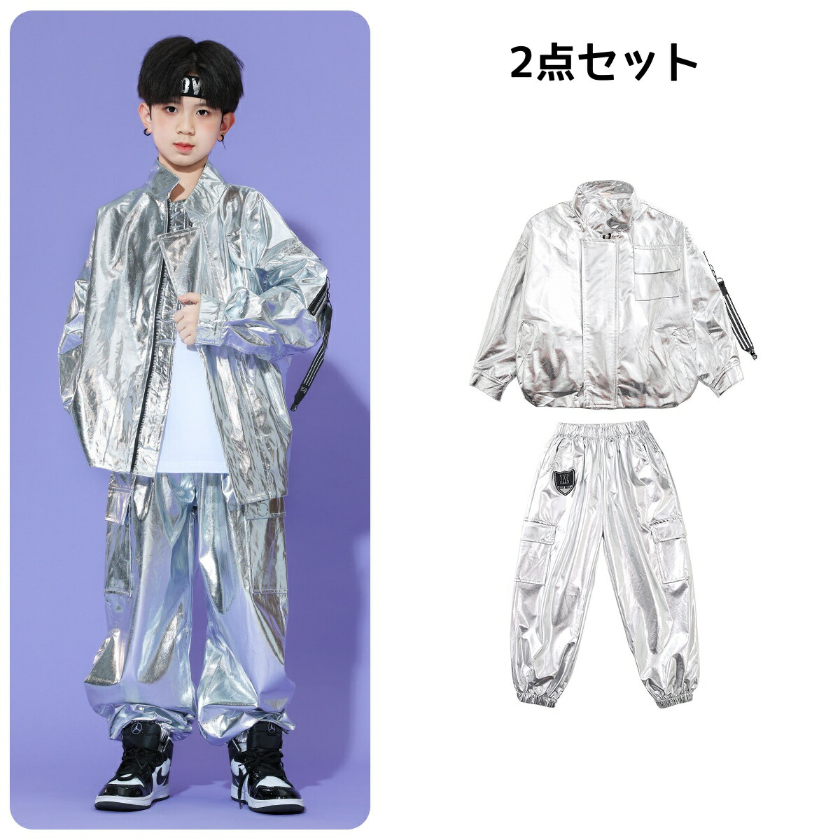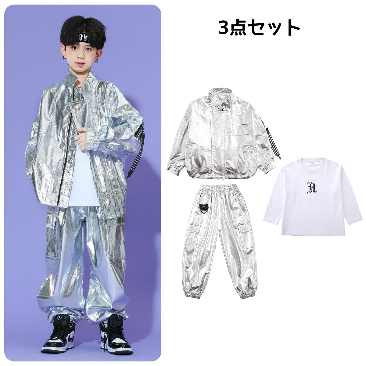 キッズ ダンス衣装 シルバー 白 銀 キッズ スーツ カジュアルセットアップ カジュアルパンツセット 新登場! Tシャツ ジャケット パンツ 2点セット 3点セット 110 120 130 140 150 160 170 180