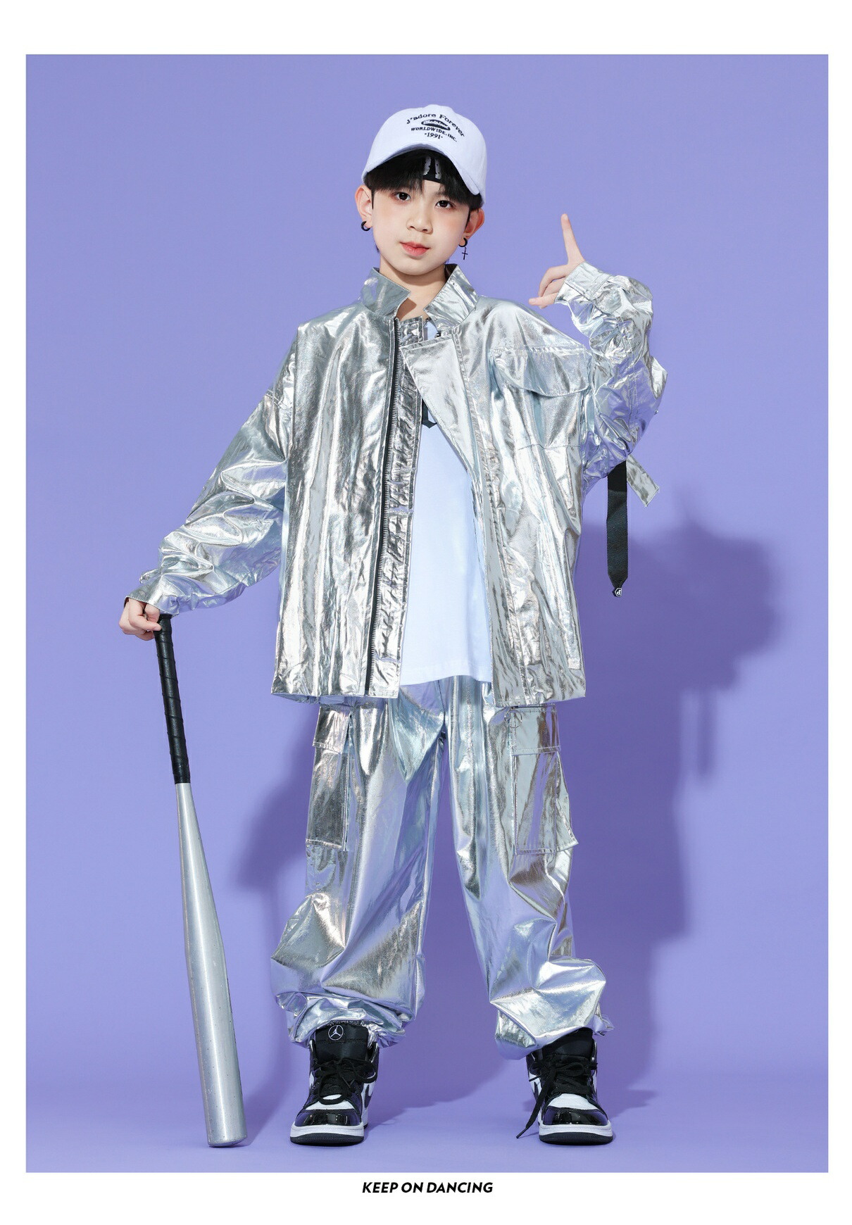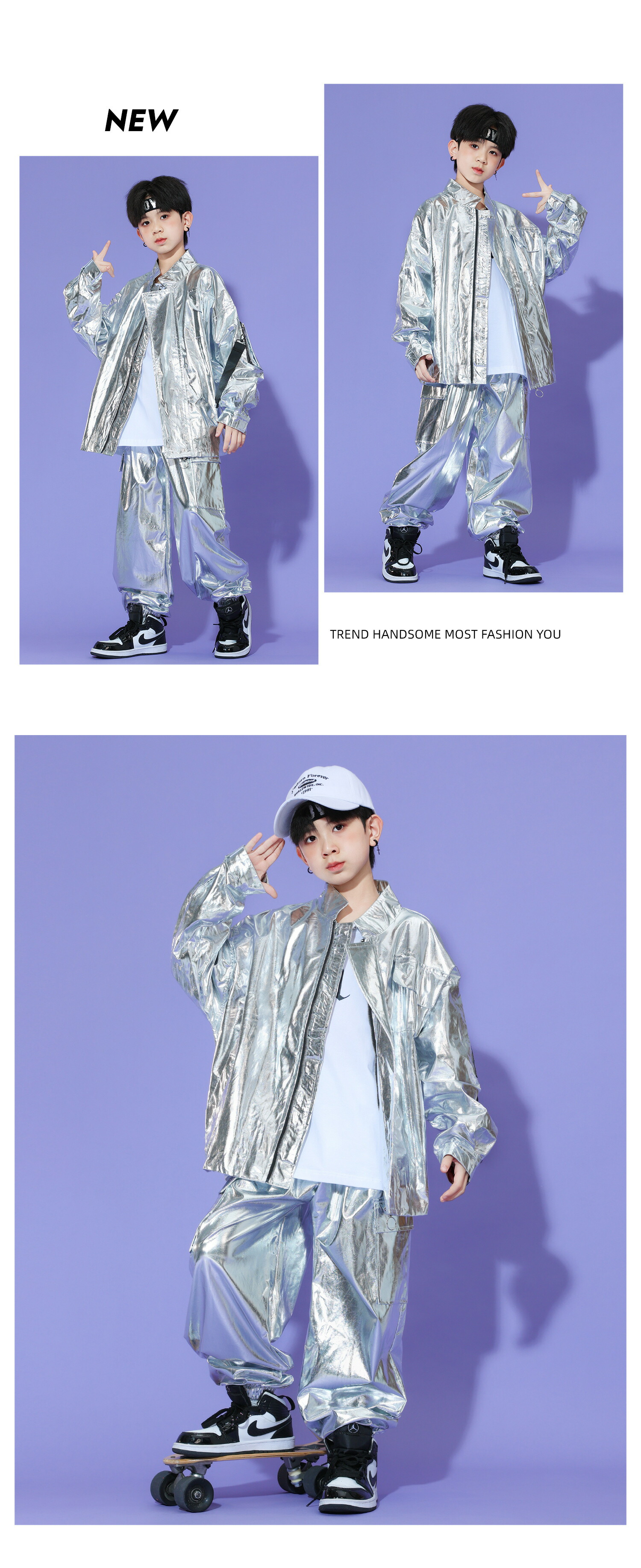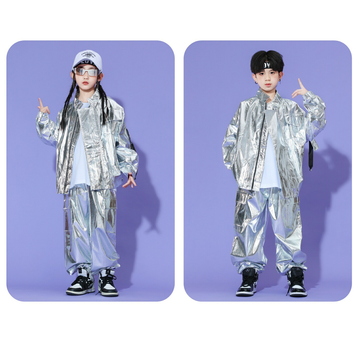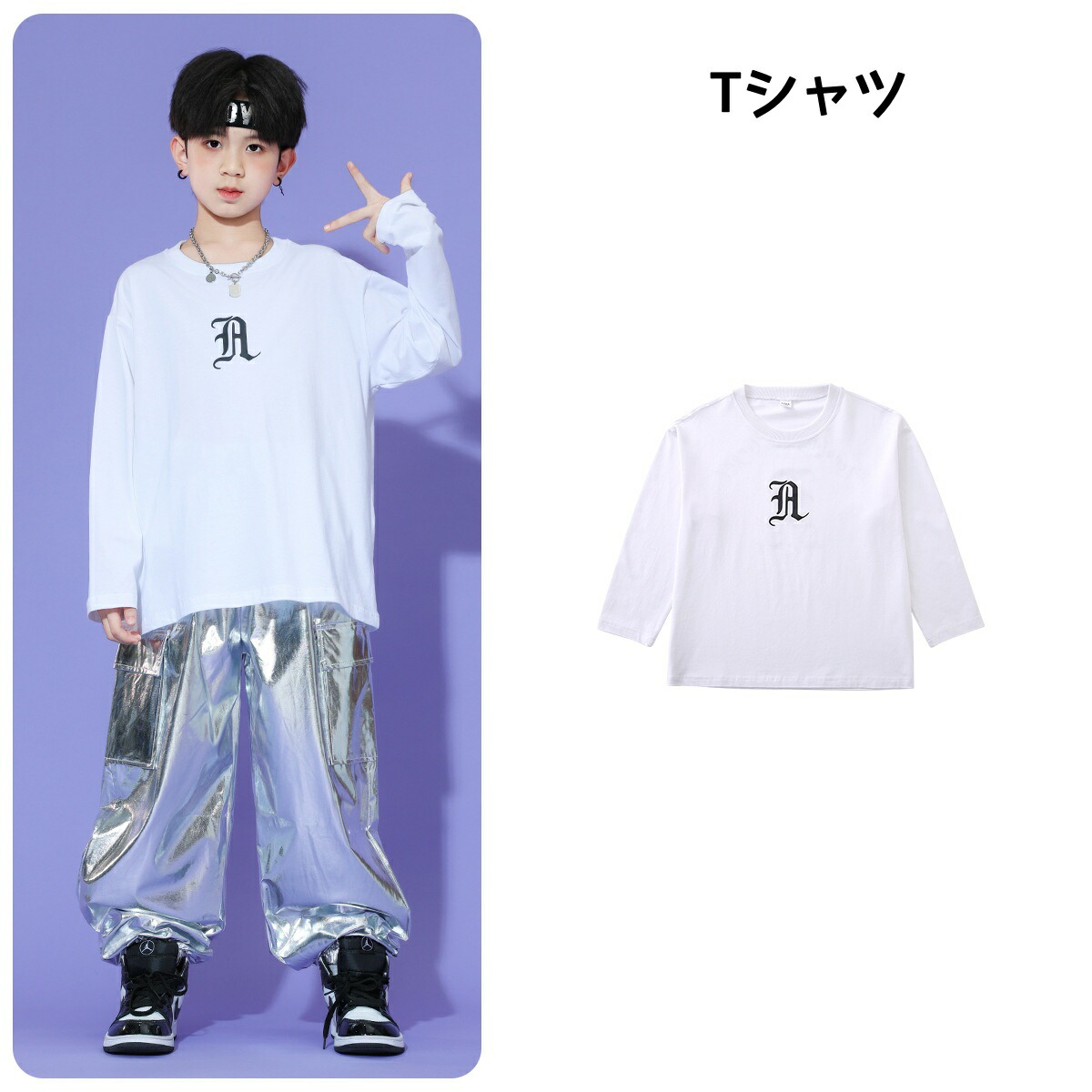 キッズ ダンス衣装 シルバー 白 銀 キッズ スーツ カジュアルセットアップ カジュアルパンツセット 新登場! Tシャツ ジャケット パンツ 2点セット 3点セット 110 120 130 140 150 160 170 180